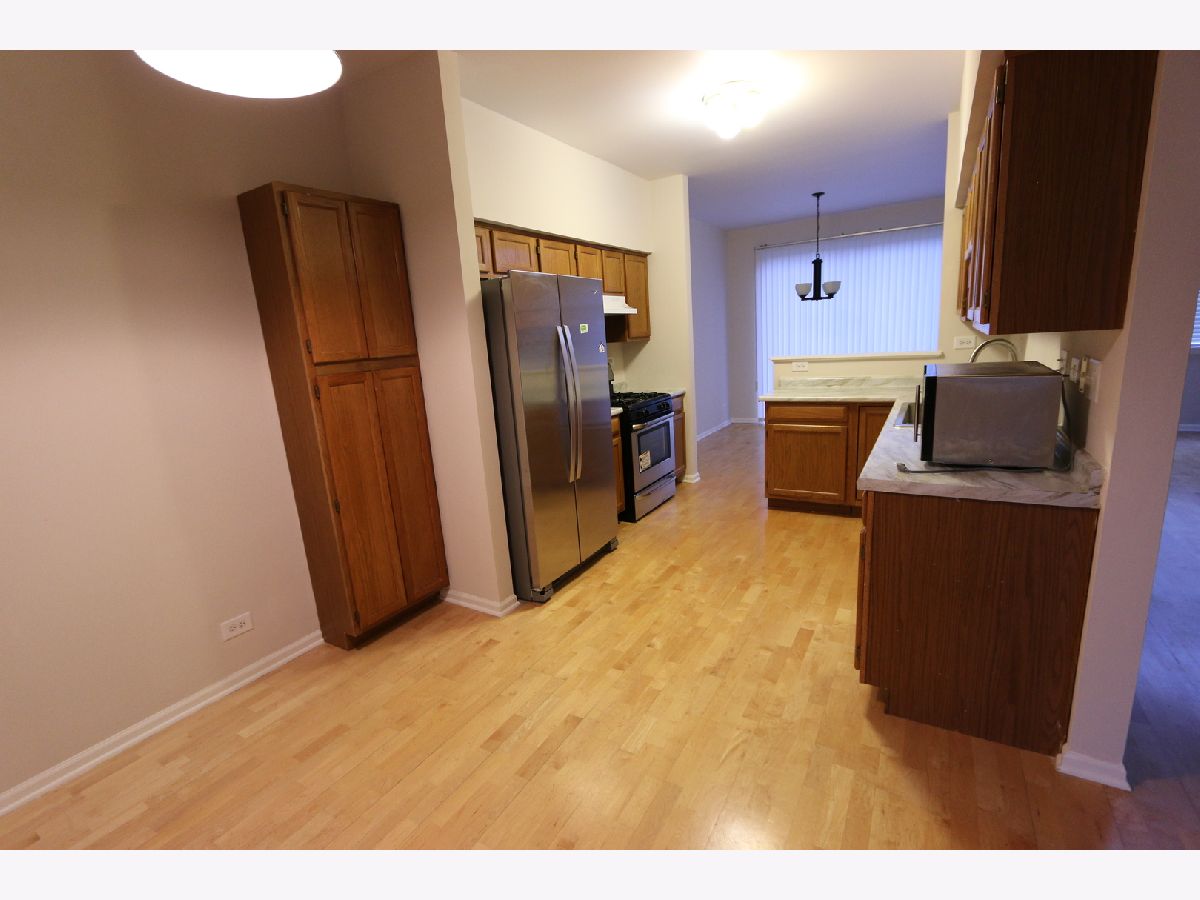 Light & Bright! New painting! Rarely available end unit in move in condition! Loft could be used as flex space. Come see the largest unit in Red Rock. Covered porch over the private entrance, this end unit is filled with light. Open floor plan feels even more spacious with soaring vaulted ceilings! New refrig and new stove. Big kitchen with eating area. 2nd floor new carpet. Large master w/ vaulted ceiling, as well as good sized second bedroom. Perfect location with easy access to shopping, expressways, forest preserve, medical center as well as the Target/Home Depot/Mariano's! Lawn care and snow removal included in the rent. In unit washer/dryer. Available now.
