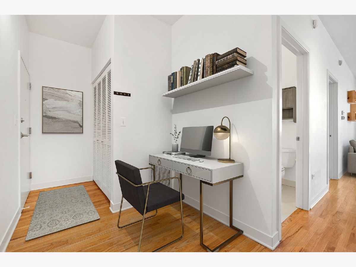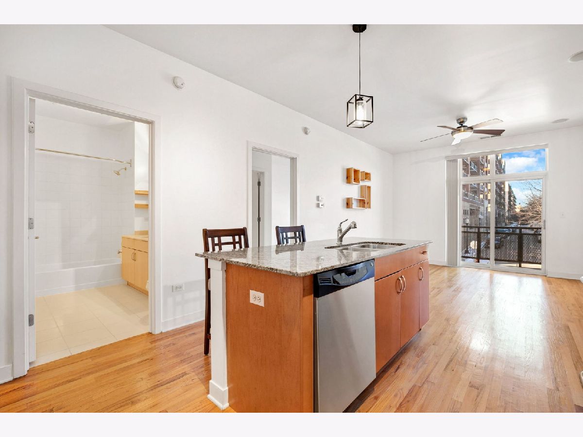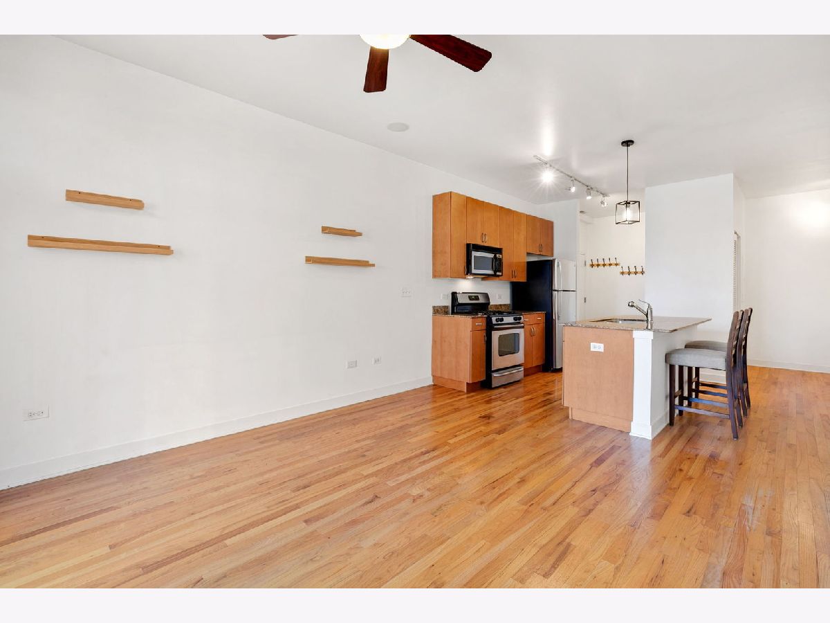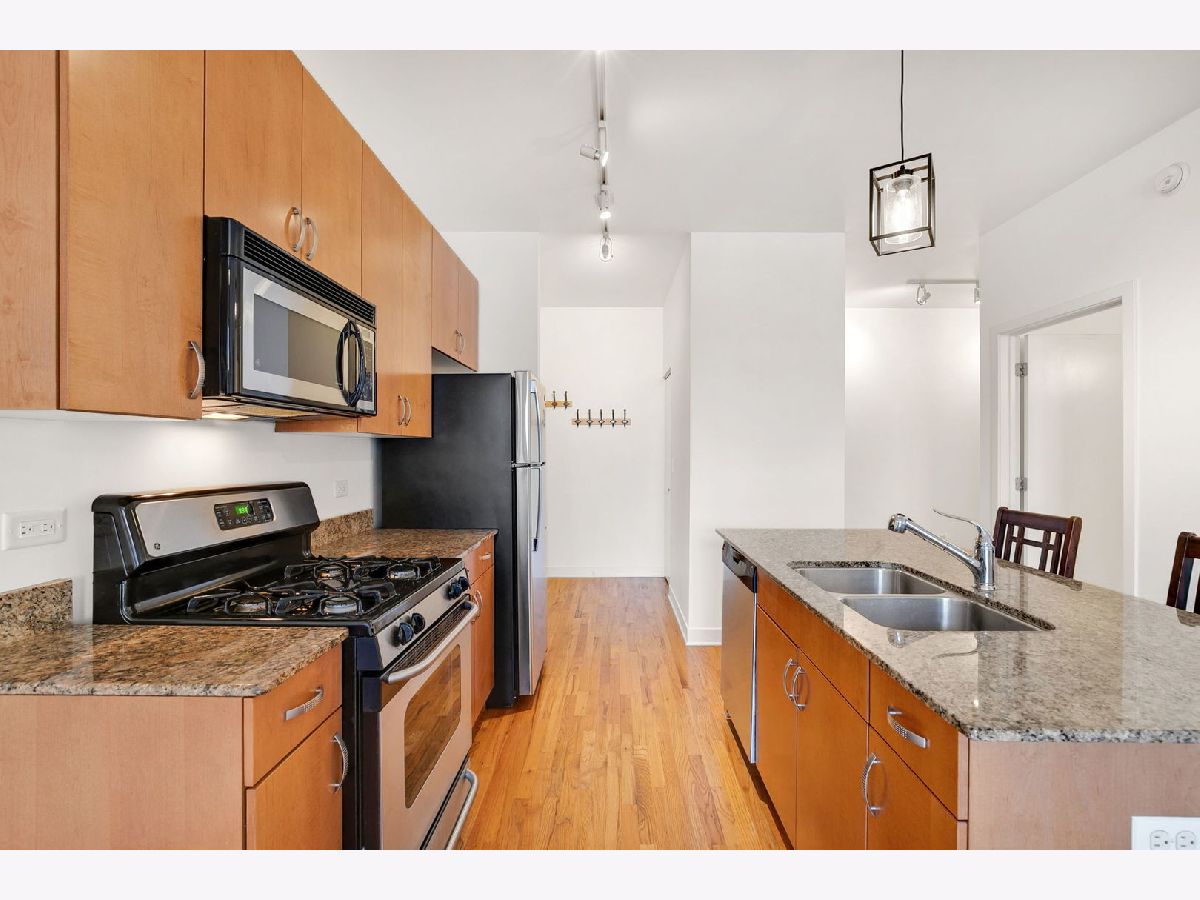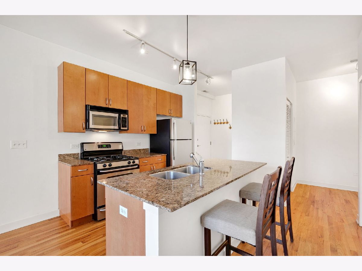Immediately Available! University Village/Pilsen - Bright and spacious 1-bedroom, 1-bath with flex space, perfect for a work-from-home setup, in a charming all-brick boutique building. Enjoy gleaming hardwood floors throughout, brand-new carpet in the bedroom, tall ceilings, and a west-facing layout that brings in beautiful afternoon light. The updated kitchen offers ample cabinet space, a gas range, new refrigerator, pendant lighting, and a granite breakfast bar ideal for cooking, dining, or entertaining. The king-sized bedroom includes an oversized walk-in closet, ceiling fan, and plush new carpet. Additional highlights include in-unit washer/dryer, central heat and A/C, and an included exterior parking space (#11) conveniently located just steps from the rear ground-level entry. Fantastic location - area amenities include playground, dog park, Halsted 8 & 18 bus line, and Metra stop across the street, with quick access to Downtown. Just minutes from Whole Foods, Target, Jewel-Osco, UIC, top restaurants, shopping, major highways, and more!