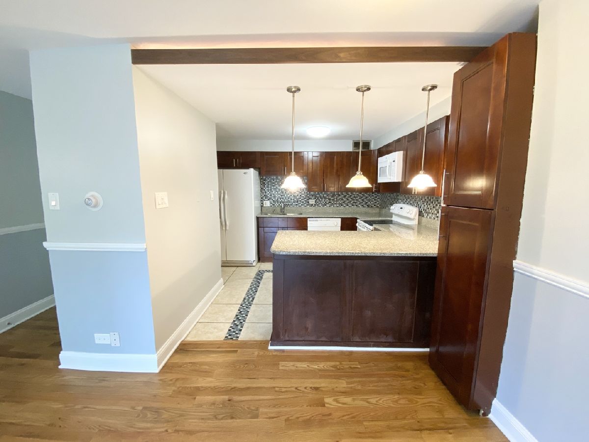 Corner end unit in move-in condition with a generous balcony. Renovated open concept kitchen with eating bar, in-unit laundry, assigned COVERED CARPORT parking optional ( $100/month) , generous closets, hardwood floors, newer windows, updated tile bathrooms, freshly painted. Affordable and close to everything Downtown Evanston has to offer. Only a few blocks to both commuter trains, and a few more to the lakefront and beaches. Northwestern Campus and shuttle are conveniently near too. Yes! you can afford a downtown Evanston lifestyle. Well managed elevator building. Pets ok with pet deposit.