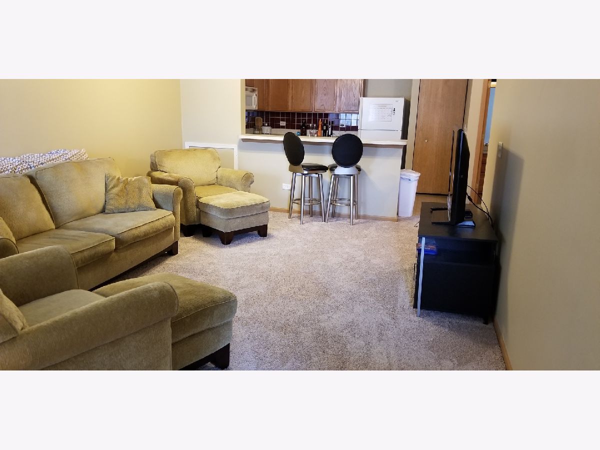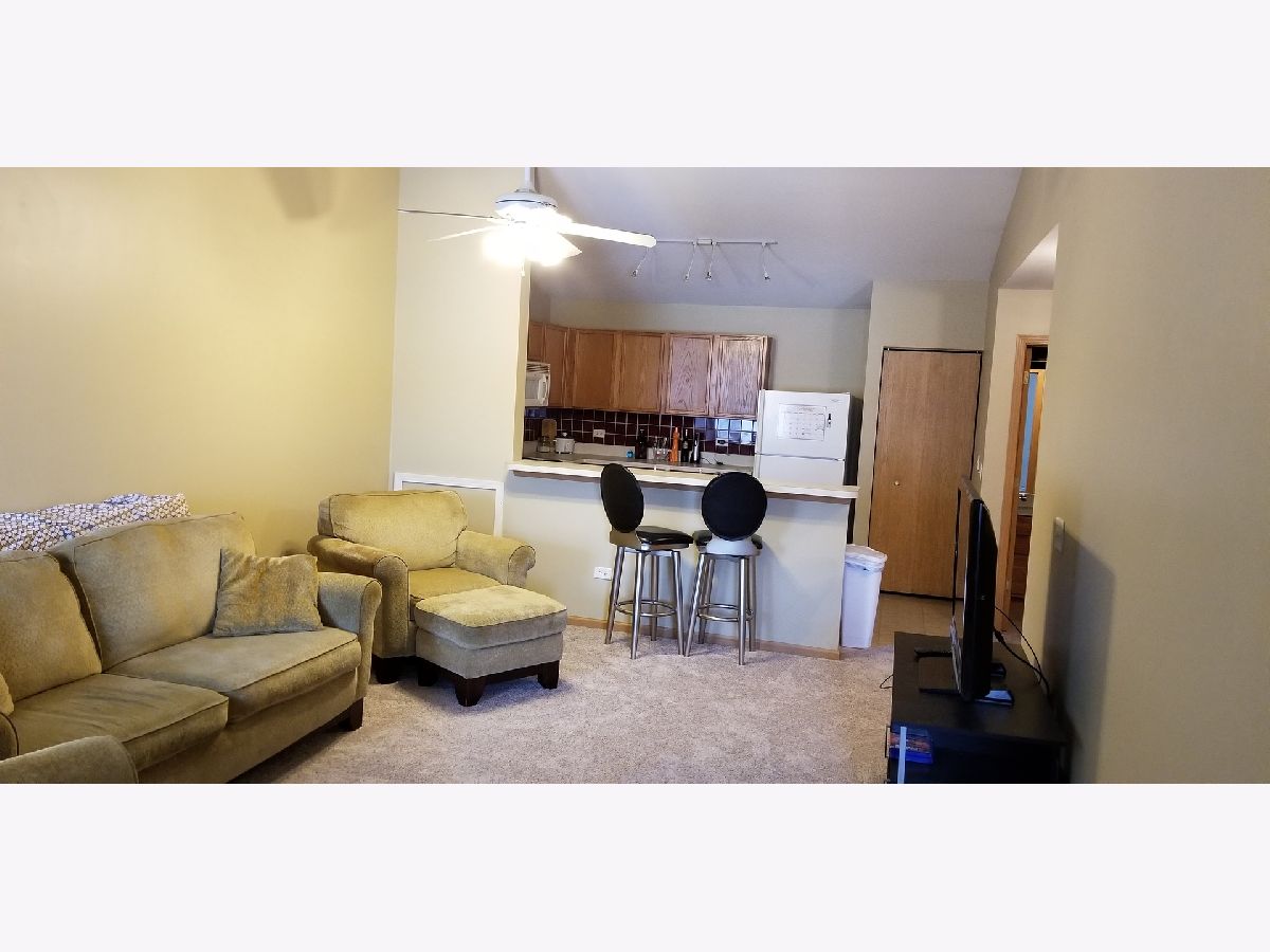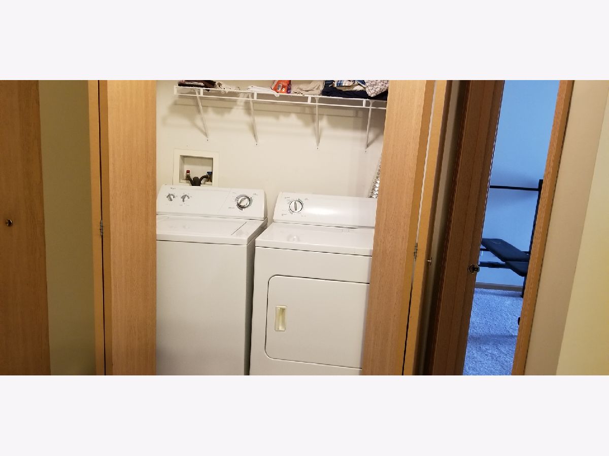 Spacious 1 Bedroom and 1 Bath 2nd Floor condo with volume ceilings. Painted in 2019 and New Carpet Installed in 2017! Large Kitchen with excellent cabinet space plus a pantry. Private Balcony which faces West for afternoon sun, is off the Living Room and there is a secure Storage room. Spacious Walk In Closet with vaulted veiling in Master Bedroom. Laundry in unit. All appliances included, including full size washer and dryer!. Fabulous location-close to Prairie Path, Outlet Mall shopping,I-88, Metra & golf course!! Water included in monthly assessment. Owner Pays Assessment. Tenant responsible Electric and Cable. Interior photos of former Tenant's Furnishing.
