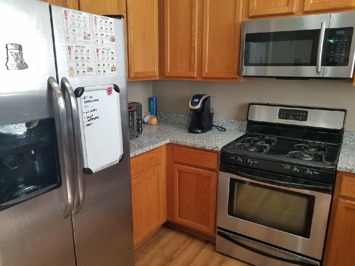 Convenient Location & Excellent Condition. Move In & Enjoy Maintenance Free Living! 944 SF 2 Story TH w/Covered Porch Entry & 2 Car Attached Garage. Walls painted in Neutral Tones, All Appliances Included, Dining Area with access to Balcony, New Plank Flooring on 1st Floor, New Granite Countertops, 2nd Floor Laundry with Stackable Washer/Dryer, Nearby Park & easy Access to I94. Possession Early October.