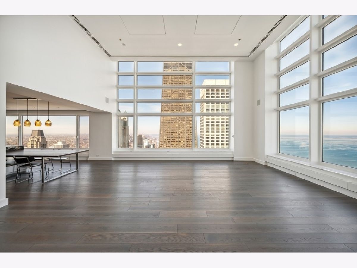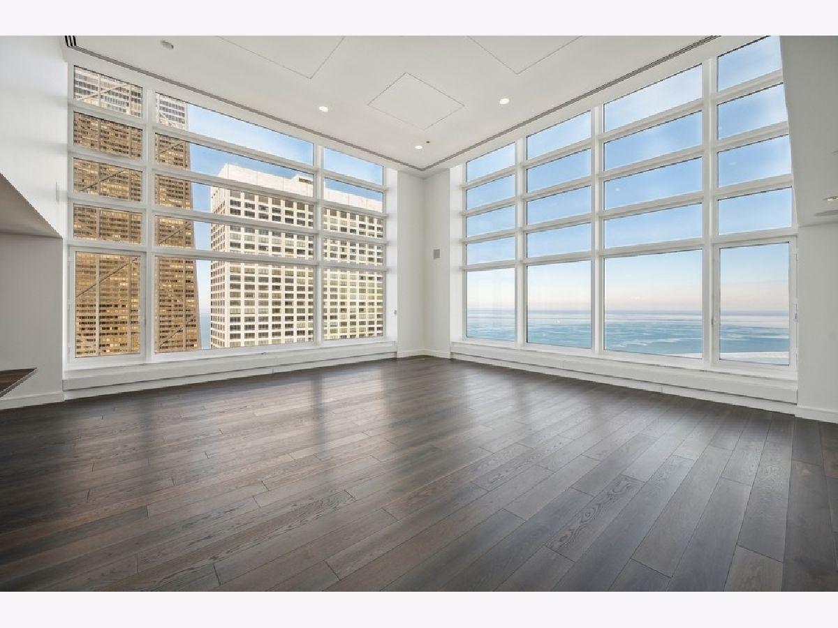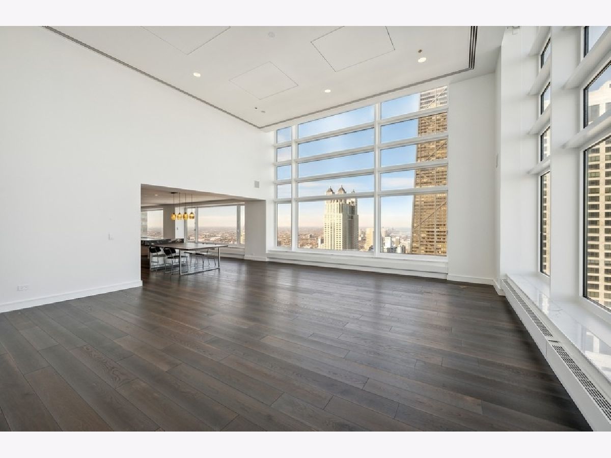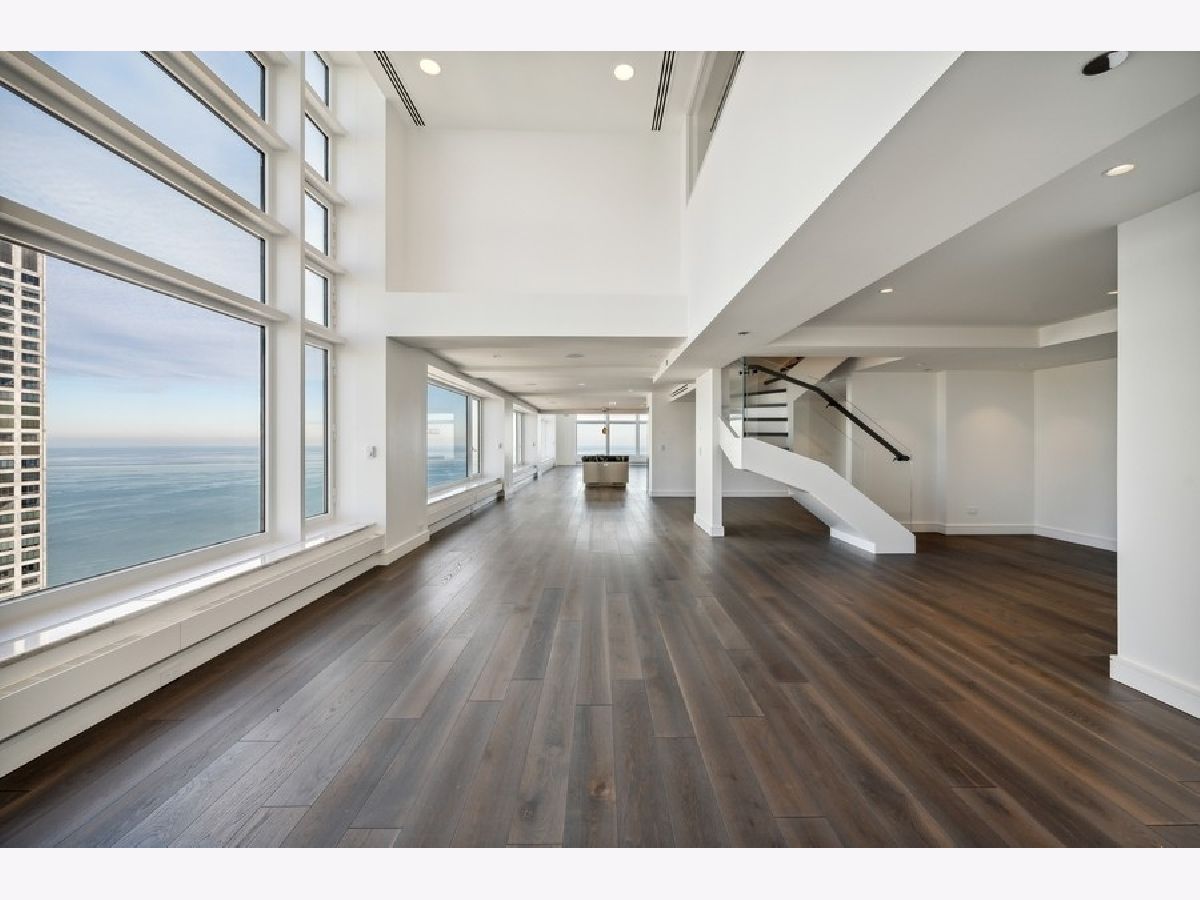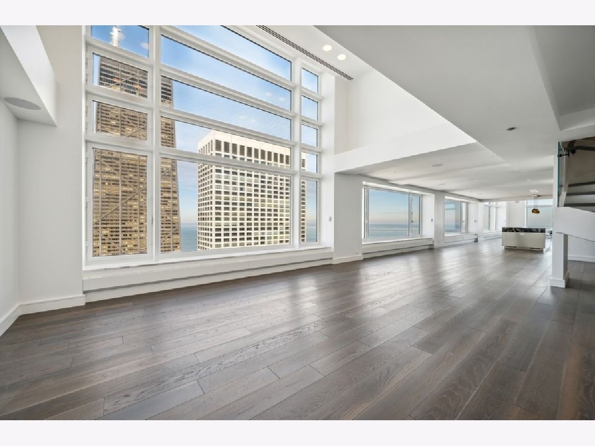 Exquisitely modern with unrivaled, panoramic views of the skyline and Lake Michigan, 161 E. Chicago Ave., unit 60M1, is a never before lived in 3 bed/3.5 bath, duplex penthouse in the exclusive Olympia Centre residences. Recently reconfigured and renovated by Centaur Interiors, no expense was spared on the fixtures and finishes for this 5,400-square-foot, top tier unit with a corner position. The main level program presents a large, two-story great room with 85 feet of contiguous windows to the north and 45 feet of windows to the east. Perfect for elevated entertaining and everyday living, the great room encompasses a formal living room space, a lounge/den with a custom wet bar with full-height Gaggenau wine refrigeration, an open-concept kitchen, and a fabulous family room - all of which find connectivity thanks to seven-inch-wide, white oak flooring. The centrally located chef's kitchen is a masterpiece of design, flaunting custom Arclinea cabinets in fume oak, a leathered quartzite island, professional Sub-Zero/Wolf appliances, and an attached eight-foot kitchen table. The primary suite is also located on the main level and features an epic 15' x 14' walk-in closet by B&B Italia with a leather-wrapped island and a Breccia Capraia marble-clad, en-suite bath with a custom glass top vanity by Artelinea, a Roman shower, and a bubble jet soaking tub. Upstairs, the second level presents two, spacious secondary bedrooms, both with walk-in closets, designer en-suite baths, and more mesmerizing views. (The third bedroom can serve as a handsome home office as is.) Additional unit details include a presentation-worthy powder room with marble vanity, two laundry rooms (one per floor), motorized shades, Waterworks plumbing fixtures, Toto intelligent toilets, surplus storage via custom millwork, surround sound, a wireless network with Araknis, a state-of-the-art Savant home automation system, and a convenient separate entrance on the second floor. Full-service building amenities include a 24-hour door staff, concierge services, a fitness center, an indoor pool and health spa, an entertaining room, a sun deck, and onsite garage parking. Situated next to some of the most famous attractions, restaurants, shops, and outdoor activities Chicago has to offer - Michigan Avenue, the historic Water Tower, the John Hancock building, the Museum of Contemporary Art, and the lakefront, just to name a few - not to mention adjacent to Neiman Marcus, 161 E. Chicago Ave., unit 60M1, is uncompromising luxury in the heart of it all.