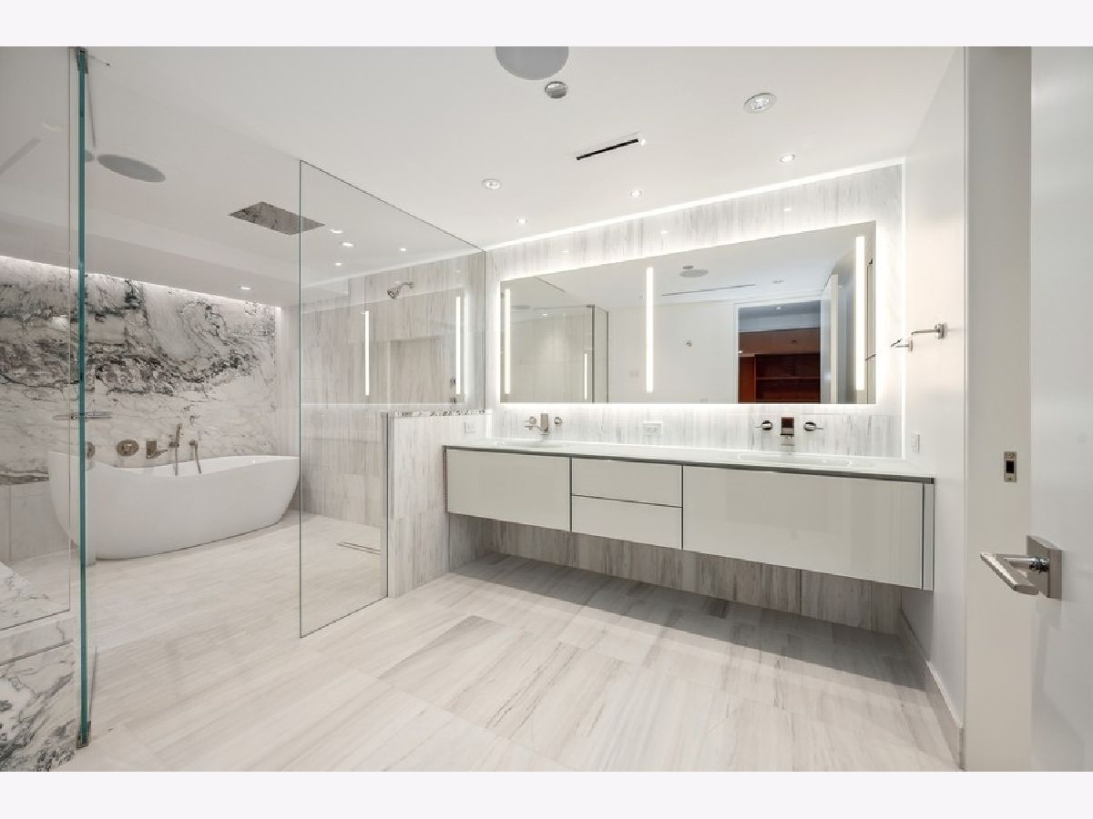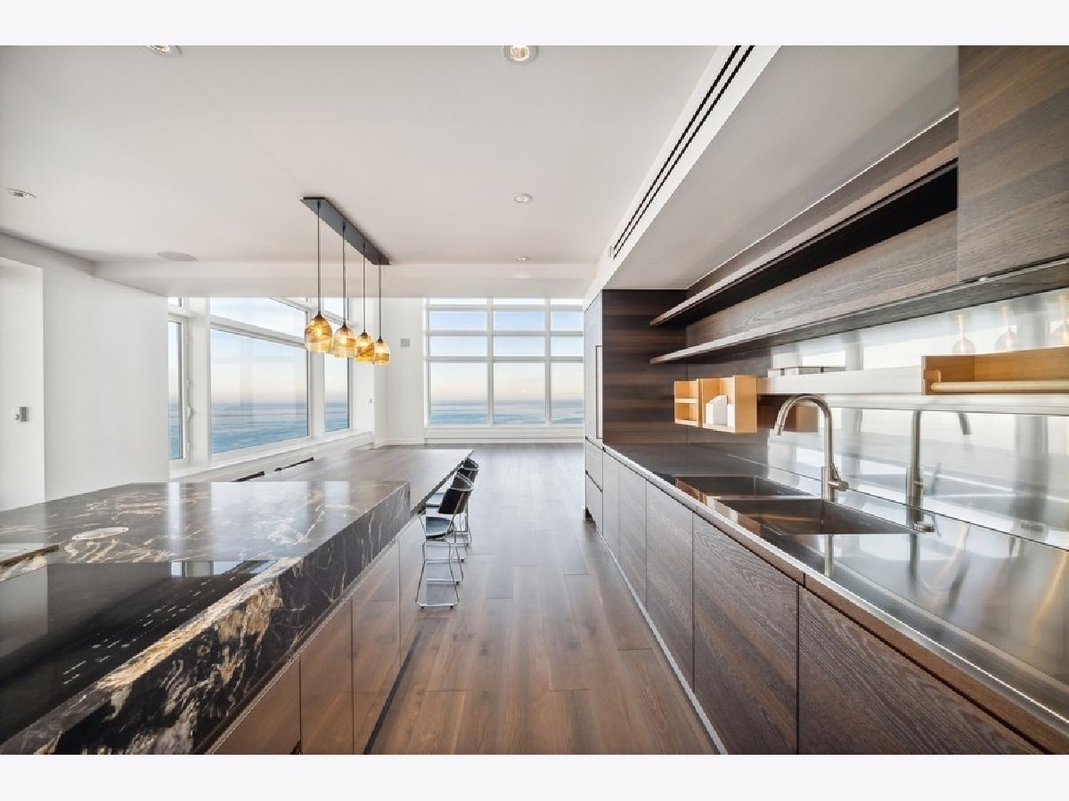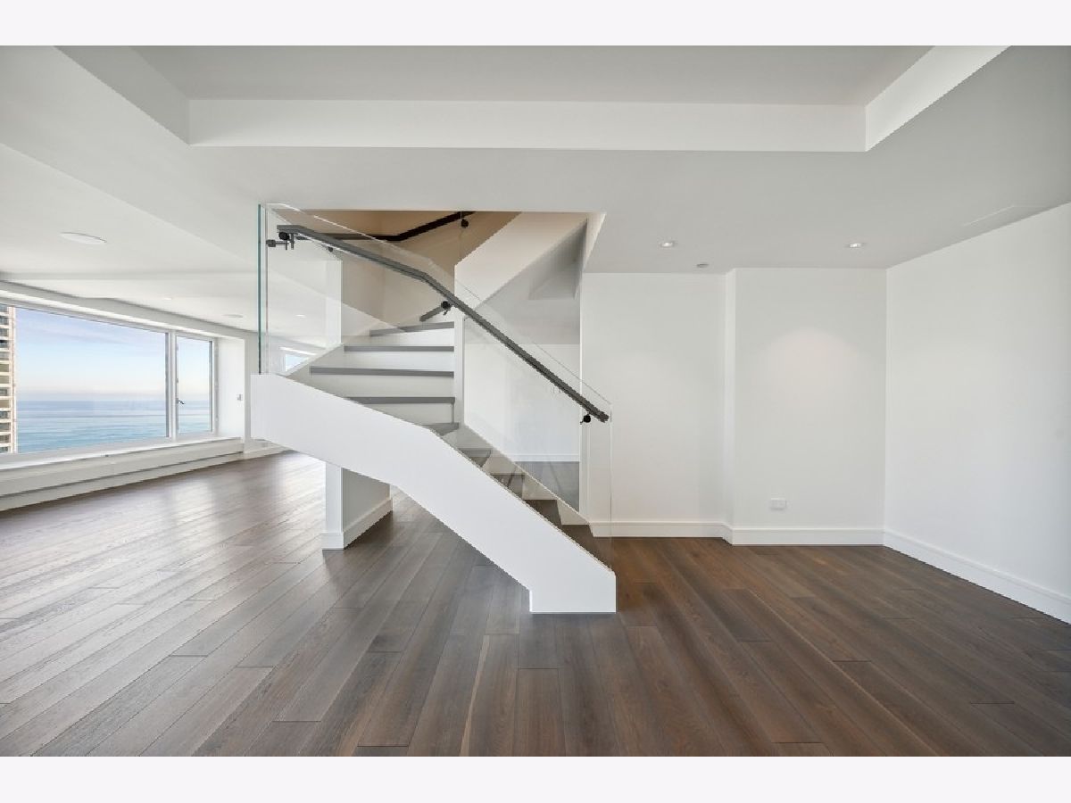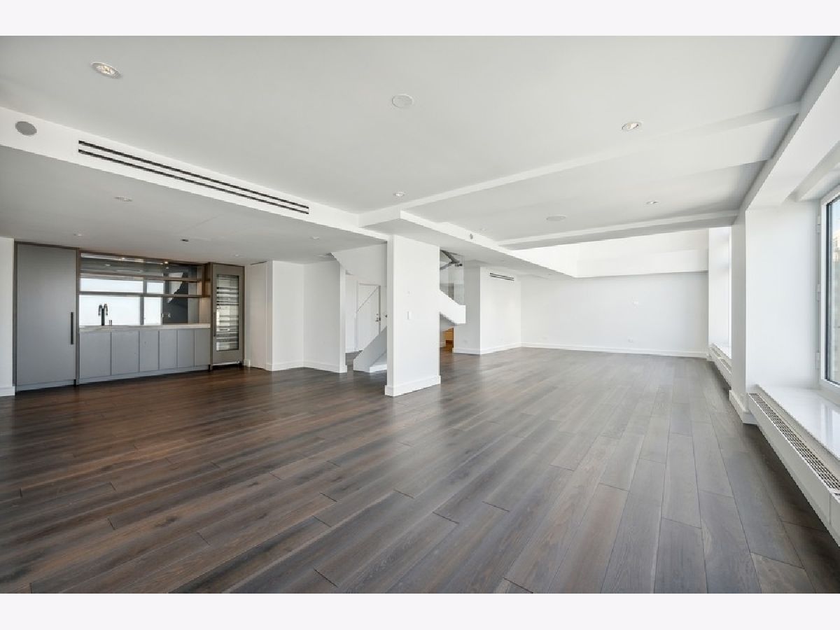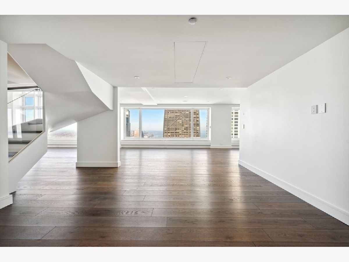 Exquisitely modern with unrivaled, panoramic views of the skyline and Lake Michigan, 161 E. Chicago Ave., unit 60M1, is a never before lived in 3 bed/3.5 bath, duplex penthouse in the exclusive Olympia Centre residences. Recently reconfigured and renovated by Centaur Interiors, no expense was spared on the fixtures and finishes for this 5,400-square-foot, top tier unit with a corner position. The main level program presents a large, two-story great room with 85 feet of contiguous windows to the north and 45 feet of windows to the east. Perfect for elevated entertaining and everyday living, the great room encompasses a formal living room space, a lounge/den with a custom wet bar with full-height Gaggenau wine refrigeration, an open-concept kitchen, and a fabulous family room - all of which find connectivity thanks to seven-inch-wide, white oak flooring. The centrally located chef's kitchen is a masterpiece of design, flaunting custom Arclinea cabinets in fume oak, a leathered quartzite island, professional Sub-Zero/Wolf appliances, and an attached eight-foot kitchen table. The primary suite is also located on the main level and features an epic 15' x 14' walk-in closet by B&B Italia with a leather-wrapped island and a Breccia Capraia marble-clad, en-suite bath with a custom glass top vanity by Artelinea, a Roman shower, and a bubble jet soaking tub. Upstairs, the second level presents two, spacious secondary bedrooms, both with walk-in closets, designer en-suite baths, and more mesmerizing views. (The third bedroom can serve as a handsome home office as is.) Additional unit details include a presentation-worthy powder room with marble vanity, two laundry rooms (one per floor), motorized shades, Waterworks plumbing fixtures, Toto intelligent toilets, surplus storage via custom millwork, surround sound, a wireless network with Araknis, a state-of-the-art Savant home automation system, and a convenient separate entrance on the second floor. Full-service building amenities include a 24-hour door staff, concierge services, a fitness center, an indoor pool and health spa, an entertaining room, a sun deck, and onsite garage parking. Situated next to some of the most famous attractions, restaurants, shops, and outdoor activities Chicago has to offer - Michigan Avenue, the historic Water Tower, the John Hancock building, the Museum of Contemporary Art, and the lakefront, just to name a few - not to mention adjacent to Neiman Marcus, 161 E. Chicago Ave., unit 60M1, is uncompromising luxury in the heart of it all.