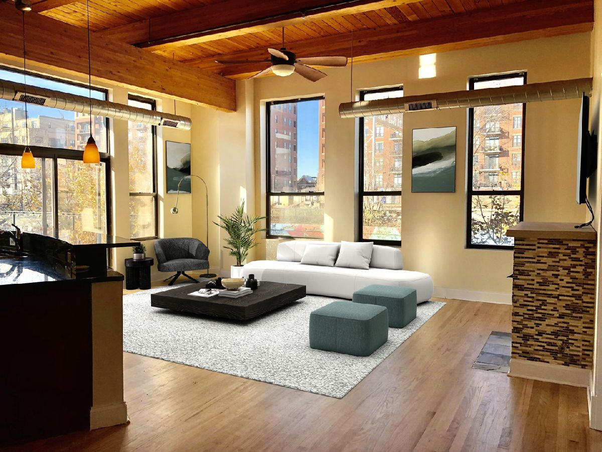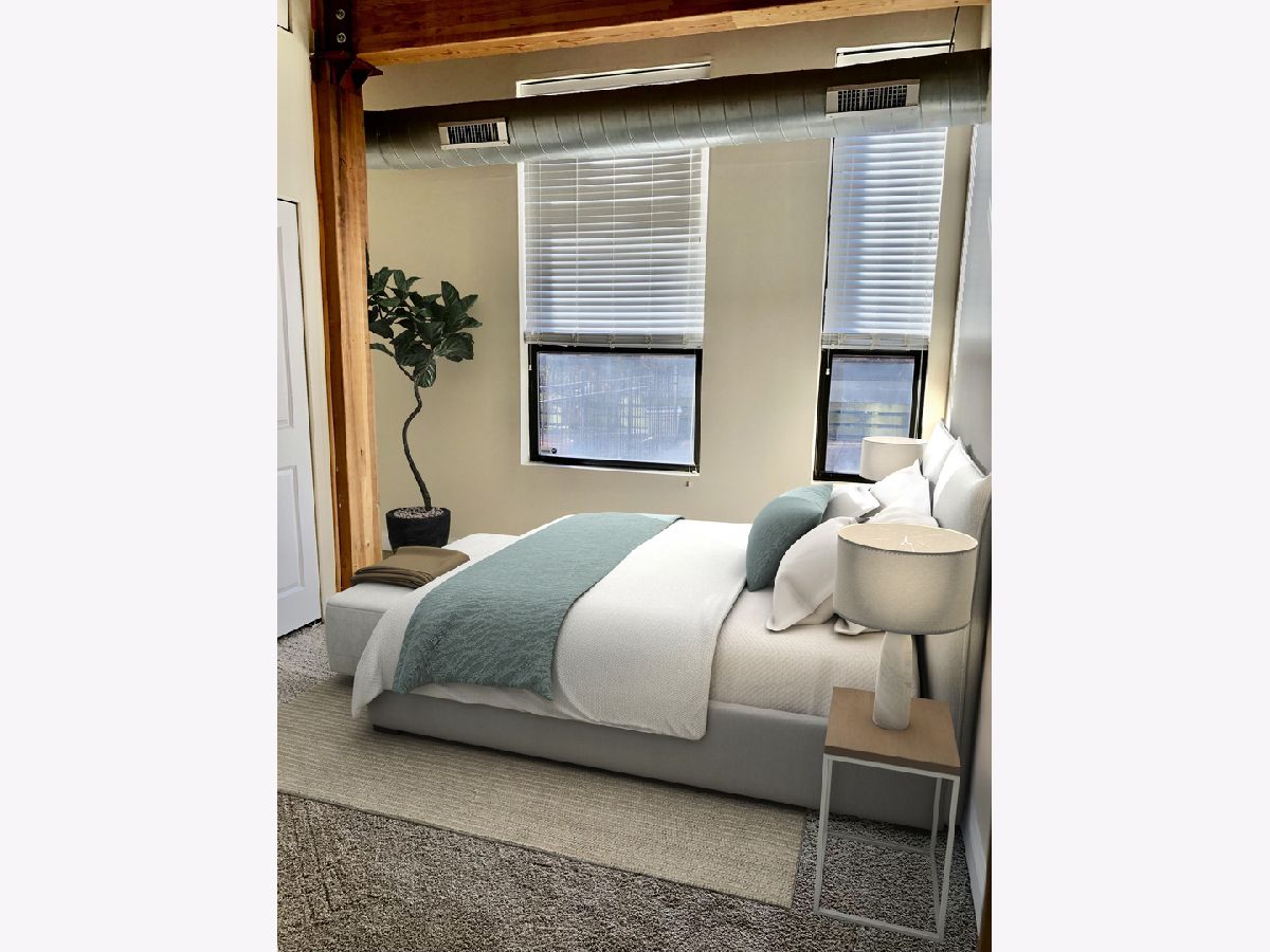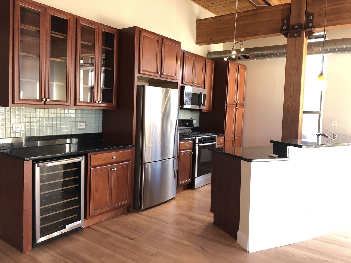 SO MUCH SPACE, both interior and exterior!! SECURE GARAGE PARKING INCLUDED! Great end unit loft in hip Pilsen, where the community & the arts are thriving. This rarely available, large, corner 2 bedroom/2 bath loft has its own massive 1000 sq ft PRIVATE terrace to enjoy.Terrace has sky & loop view and furnished with large growing tubs for your veggies & flowers. Enjoy the elevator in this newer built condo building., The unit really lives like a home. Enjoy the open concept space with fireplace and welcoming kitchen island with granite and beverage cooler - perfect for entertaining. Primary en-suite bedroom has new carpet, double-sinks, a walk-in shower AND tub. Desirable split floor plan has a 2nd bedroom with its own bath at the other end of the loft for privacy. Picture yourself entertaining, gardening, sunning and grilling on your private 1000 sq. ft. terrace with beautiful open air. This exposed timber loft home also boasts 12' ceilings, endless daylight from over-sized windows, fireplace, in-unit washer dryer, newly refinished hardwood floors, new bedroom carpeting, newly painted and SS appliances. All this plus a secured/heated/assigned garage parking space is included in rent! Minimum credit score of 700 required and monthly salary equal to 3 times the monthly rent. This could all be yours, but it won't last...