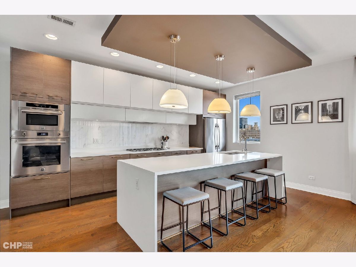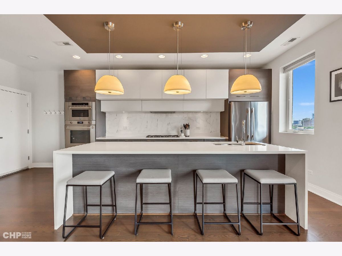 Experience the allure of this magnificent West Town residence. This expansive 3 bed 2 bath condo showcases an extraordinary floor plan spanning nearly 40 feet in width and over 2100 square feet on a single level. The moment you enter, you'll be entranced by the Italian-inspired kitchen and bathrooms, complete with a cascading waterfall quartz countertop, top-of-the-line stainless steel appliances, a wine fridge, a walk-in pantry, and expansive wide plank oak hardwood floors. A true gem of this home lies in the panoramic skyline vistas that grace the terrace adjacent to the kitchen and dining area. The primary suite stands out as another exceptional feature, offering an oversized walk-in closet and an opulent spa bath. Indulge in the spa bath's soaking tub, steam shower, and separate double vanity, creating an equally lavish and tranquil sanctuary for unwinding and replenishment. Complementing these remarkable attributes, the home includes the added advantage of two tandem garage spaces included in the rent. Available November 1st, this residence presents an unparalleled opportunity for value in one of the city's most coveted neighborhoods. Seize the chance to call this remarkable West Town residence your very own!