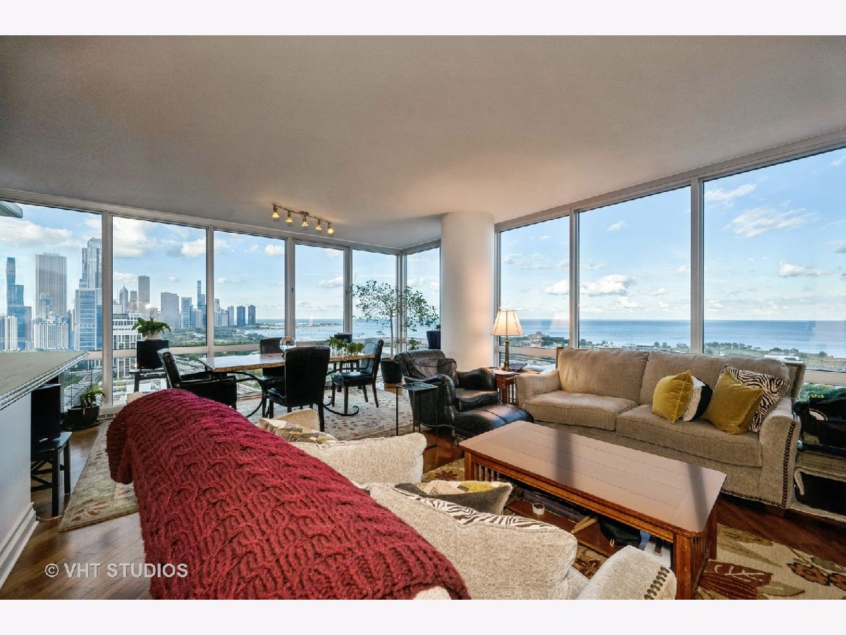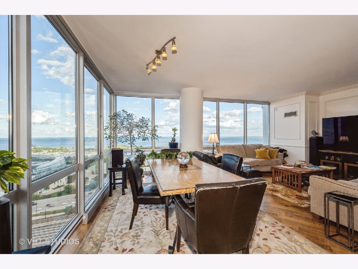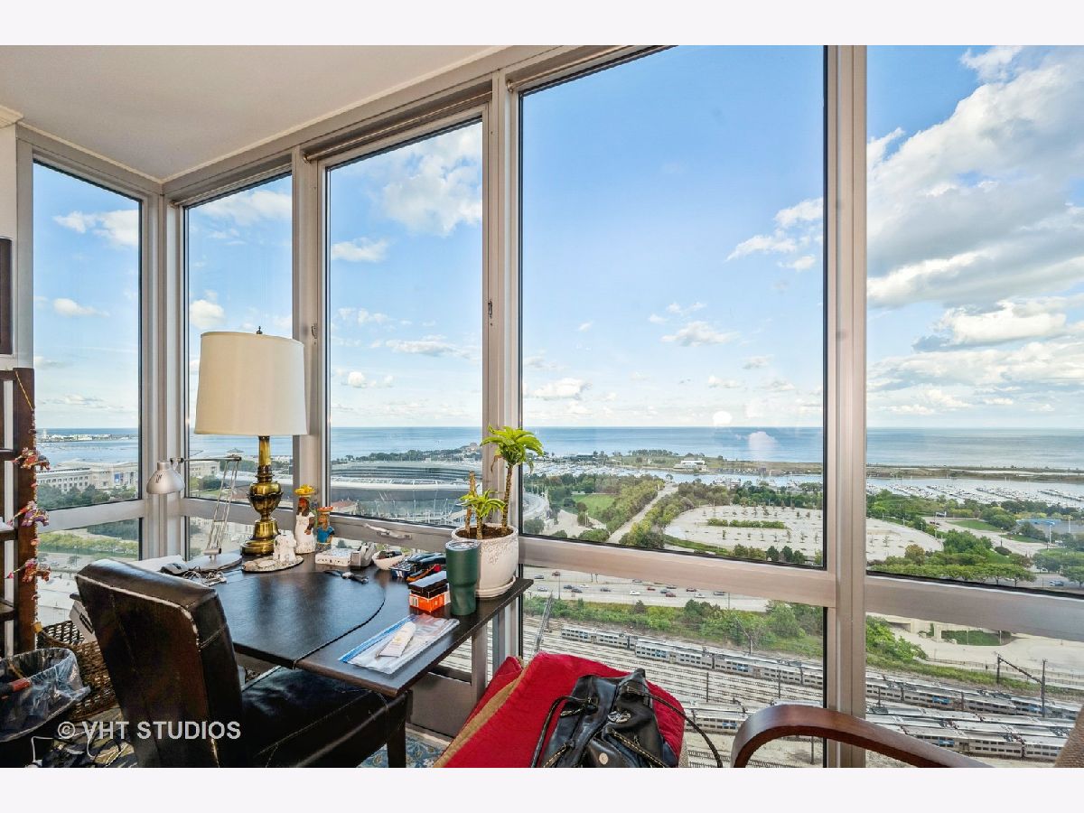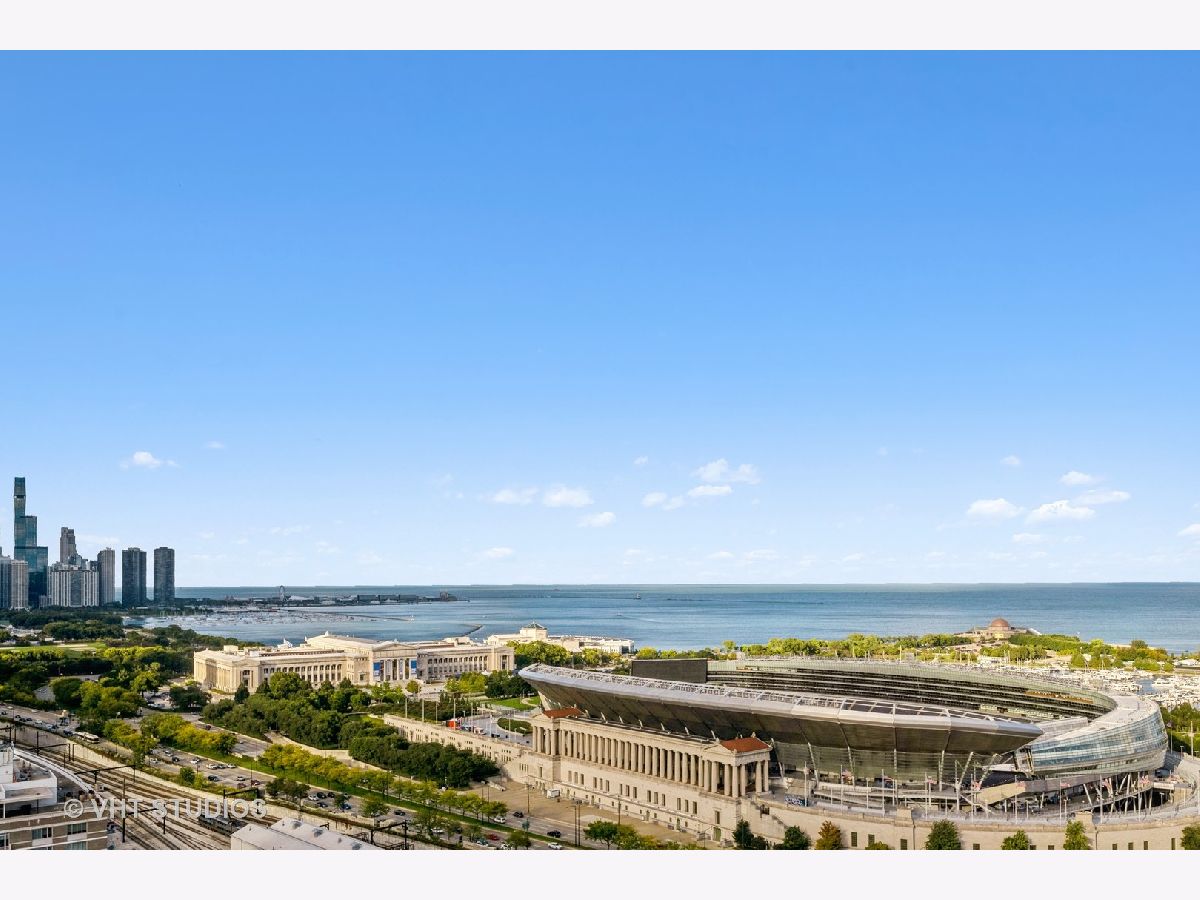 SPECTACULAR AND BREATHTAKING do not describe the unrivaled views of the east, north, and south exposures of the 27th floor vista from this 3 bedroom, 2 bathroom condominium in the 1600 Museum Park Condominium. The panorama is enhanced by the floor to ceiling windows in the living room, dining room, bedrooms and kitchen. Unimpeded views of downtown Chicago, Navy Pier, Grant Park, Buckingham Fountain, Soldier Field, Northerly Island, McCormick Place, and the Jewell of Chicago, Lake Michigan, the views of which are guaranteed by recorded easement that spans the footprint of the building. Wide plank diagonal walnut floors throughout. Extra wide custom ceiling and floor mouldings. Custom decorative wall and door mouldings. Huge foyer with enormous front hall closet. Full size stackable W/D in laundry closet and a separate large linen closet. All bedrooms have spacious closets. The primary bedroom has a WIC with custom built- ins. Primary BA features custom cherry wood cabinets and front panel on whirlpool tub, custom glass shower door, body sprayers, extra large overhead shower head. Showers in primary bath are programable for time and temperature. Custom tile from Europe in shower, floor and walls. Grohe fixtures. The 2nd BA also has numerous body sprayers, Grohe fixtures, European tiles, custom cabinetry, custom lighting fixtures, custom glass shower door. Kitchen features designer cherry wood cabinetry everywhere with in and under cabinet lighting. Fisher Paykel double dish drawer with cabinet front panel, SubZero refrigerator/freezer with custom front cabinet panel, Wolf ceramic cooktop, Viking double SS walloven, Viking microwave oven, ceramic farm sink imported from France with disposal. Glass backsplash. Building amenities include roof top pool and sundeck, party room, gas BBQ grills in huge patio overlooking Lake Michigan, men and women's sauna, exercise room, storage, on site engineer, building manager, 24 HR doorperson. This property was professionally designed and finished for the owners. It is for the sophisticated tenant with appreciation for quality and detail. Shown by appointment only. Contact Listing Agent. 2 premier parking spaces available on first level for 250 dollars per month each. Available now.