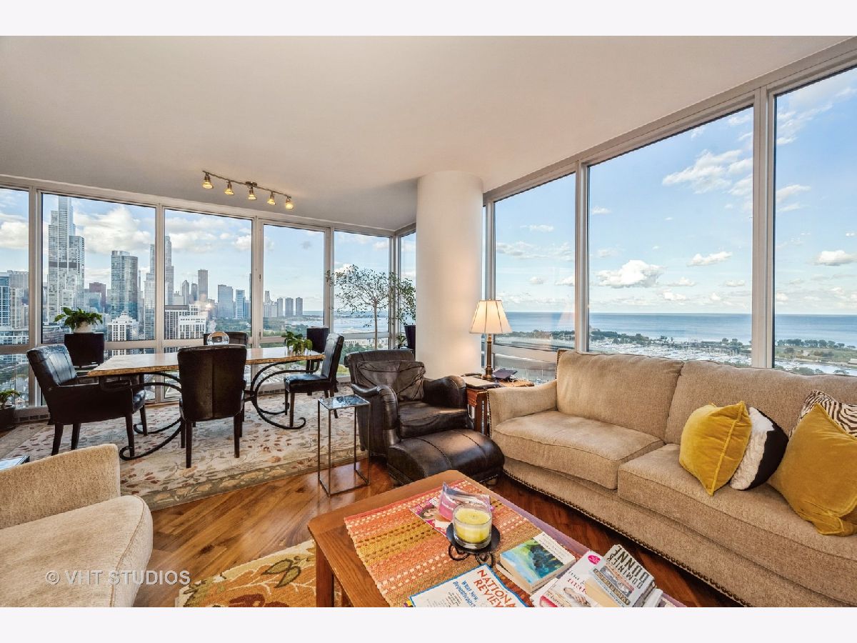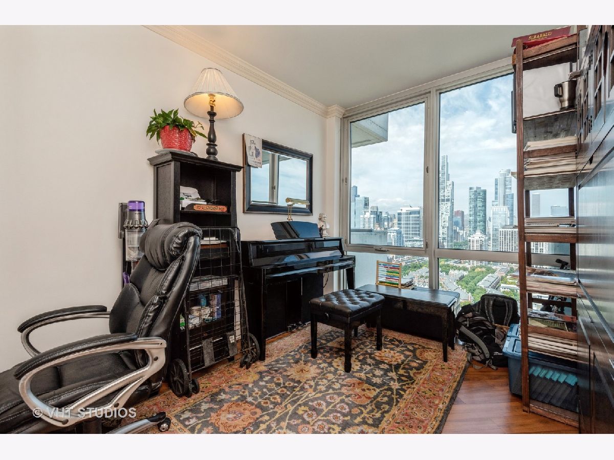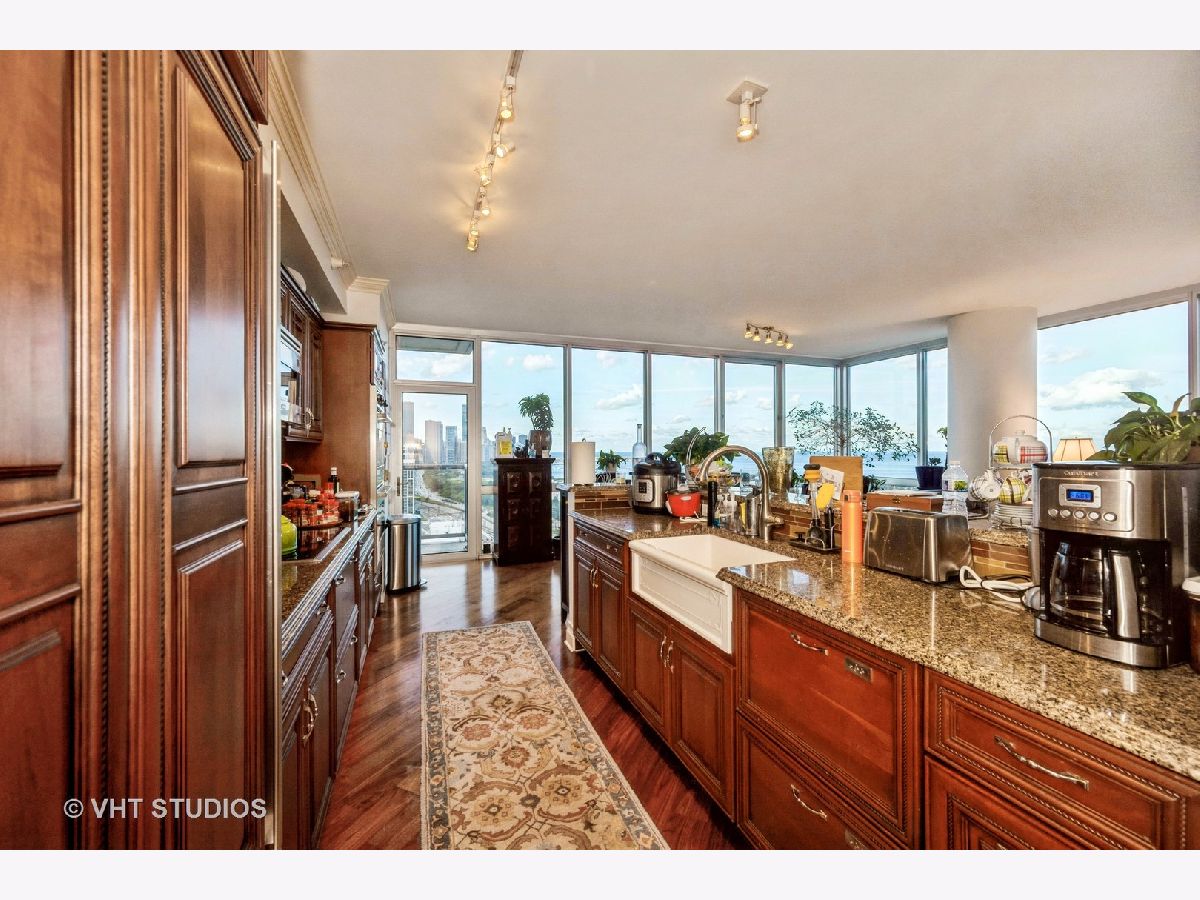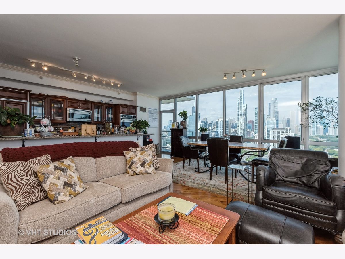 SPECTACULAR AND BREATHTAKING do not describe the unrivaled views of the east, north, and south exposures of the 27th floor vista from this 3 bedroom, 2 bathroom condominium in the 1600 Museum Park Condominium. The panorama is enhanced by the floor to ceiling windows in the living room, dining room, bedrooms and kitchen. Unimpeded views of downtown Chicago, Navy Pier, Grant Park, Buckingham Fountain, Soldier Field, Northerly Island, McCormick Place, and the Jewell of Chicago, Lake Michigan, the views of which are guaranteed by recorded easement that spans the footprint of the building. Wide plank diagonal walnut floors throughout. Extra wide custom ceiling and floor mouldings. Custom decorative wall and door mouldings. Huge foyer with enormous front hall closet. Full size stackable W/D in laundry closet and a separate large linen closet. All bedrooms have spacious closets. The primary bedroom has a WIC with custom built- ins. Primary BA features custom cherry wood cabinets and front panel on whirlpool tub, custom glass shower door, body sprayers, extra large overhead shower head. Showers in primary bath are programable for time and temperature. Custom tile from Europe in shower, floor and walls. Grohe fixtures. The 2nd BA also has numerous body sprayers, Grohe fixtures, European tiles, custom cabinetry, custom lighting fixtures, custom glass shower door. Kitchen features designer cherry wood cabinetry everywhere with in and under cabinet lighting. Fisher Paykel double dish drawer with cabinet front panel, SubZero refrigerator/freezer with custom front cabinet panel, Wolf ceramic cooktop, Viking double SS walloven, Viking microwave oven, ceramic farm sink imported from France with disposal. Glass backsplash. Building amenities include roof top pool and sundeck, party room, gas BBQ grills in huge patio overlooking Lake Michigan, men and women's sauna, exercise room, storage, on site engineer, building manager, 24 HR doorperson. This property was professionally designed and finished for the owners. It is for the sophisticated tenant with appreciation for quality and detail. Shown by appointment only. Contact Listing Agent. 2 premier parking spaces available on first level for 250 dollars per month each. Available now.