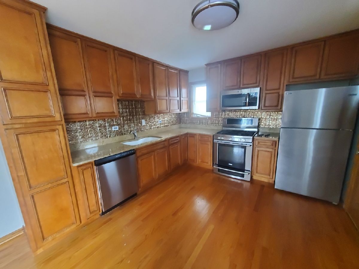 3 bedroom split with 2 bath. Newly remodeled kitchen with granite, custom cabinets, hardwood floors and stainless steel appliances. Upstairs offers bright living room. Plus Master bedroom with full bath. 2 bedrooms on the main level with full bath. Family room is perfect for kids enjoyment. Unique layout, giving private areas for related living. 2 1/2 car detached garage. Huge fenced yard. Great location close to shopping, transportation, park. Call this one home.