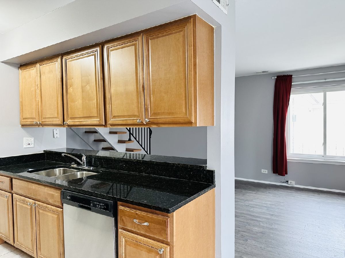 Freshly painted beautiful 2-story 2-bedroom townhouse with new laminate wood floor through out in Hoffman Estates. Newly updated kitchen and bathroom feature granite countertops, stainless appliances, cherry cabinets. Washer and dryer in unit. Spacious master bedroom with walk-in closet. Central heat and air conditioning. Sliding glass door next to dinning area and walkout to a semi-closure private patio. Private entrance & great interior location for quiet enjoyment and yet close to parks and expressways, shopping and hospital. Just move in.