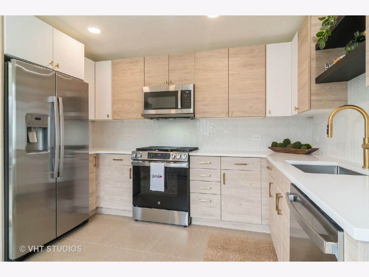 Charming Fully Renovated 3-Bedroom Apartment in Prime In-Town Location. Available for rent for the very first time, this stunning 3-bedroom, 1-bath apartment has been meticulously renovated from top to bottom. Featuring a stylish, designer like eat-in kitchen equipped with brand-new, never-before-used stainless-steel appliances, sleek Corian countertops, highlighted with a beautiful white backsplash, an abundant amount of cabinet space and tons of natural light. The apartment also boasts of a spacious living room with large windows and appointed with brand new neutral carpeting and statement lighting. There is also a versatile tandem area off the living room, ideal for a home office or cozy reading nook. Monthly rent includes a host of convenient amenities: free laundry facilities and access to an exercise room in the building basement, garbage/recycling services and snow removal. Outside amenities consist of a large, professionally landscaped yard with a 16 x 16 brick paver patio and firepit, perfect for enjoying the outdoors and parking for two cars. Downtown Libertyville is home to a variety of restaurants, boutique like shops, parks, the Metra train station and much much more. Don't miss out on this rare rental opportunity in an unbeatable location!