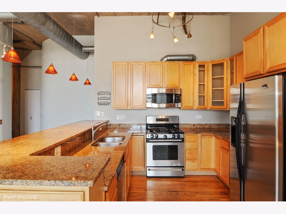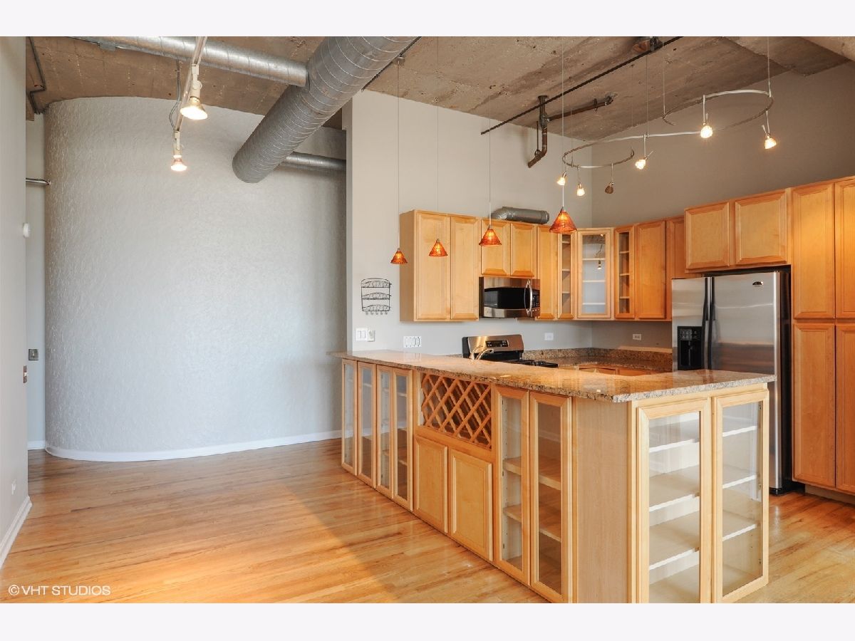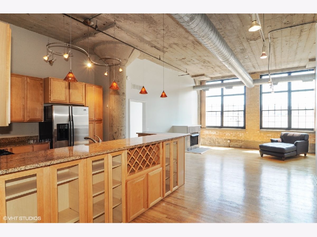 Fantastic true concrete loft in the West Loop! 1,750 sq ft large open floor plan with upgraded kitchen, SS appliances, granite counters, hardwood floors, 12' ceilings, exposed brick, huge windows and window treatments. Both bedrooms are fully enclosed with huge walk-in closets, plenty of storage thru-out the unit with massive storage room and washer & dryer in unit. Great southern exposure brings in tons of light. Impressive common roof top deck with unobstructed views of the city skyline! One heated garage space is included in the price! Please see agent remarks.