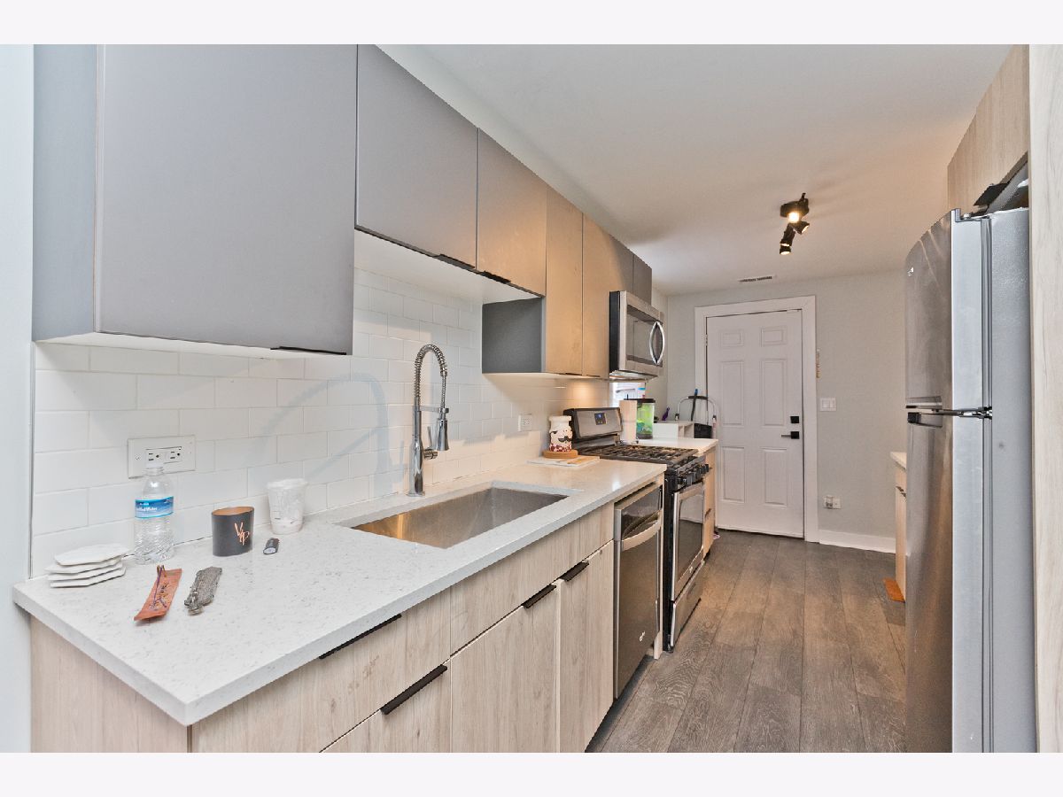 Modern 2 bed 1 bath apartment ideally located between Halsted St and the vibrant 18th St in Pilsen. Spacious living room with hardwood floors throughout the unit. The kitchen showcases two-tone oak and gray cabinets, quartz countertops, subway tile backsplash, and high-quality stainless steel appliances, creating a stylish and functional space. The bathroom has been tastefully designed with white subway tiles and Quartz countertops, adding a touch of elegance to the overall aesthetic. Central air/heat with smart themostat, in-unit laundry, and keyless smart lock with ring camera. Private back porch & shared patio. Pet friendly. Free & permit street parking available in the area. This building is centrally located in the historical Pilsen area. You will be a half block away from the storefronts, restaurants, and art galleries on 18th St. Nearby you can find venues and restaurants such as Thalia Hall, Simones, Punch House, The Giant Pennywhistle Tavern, and S.K.Y.Y! Property management company requires a mandatory Resident Benefits Package for an additional $40.00 per month; includes renters insurance, positive credit reporting for on-time rental payments, identity fraud protection, and more.