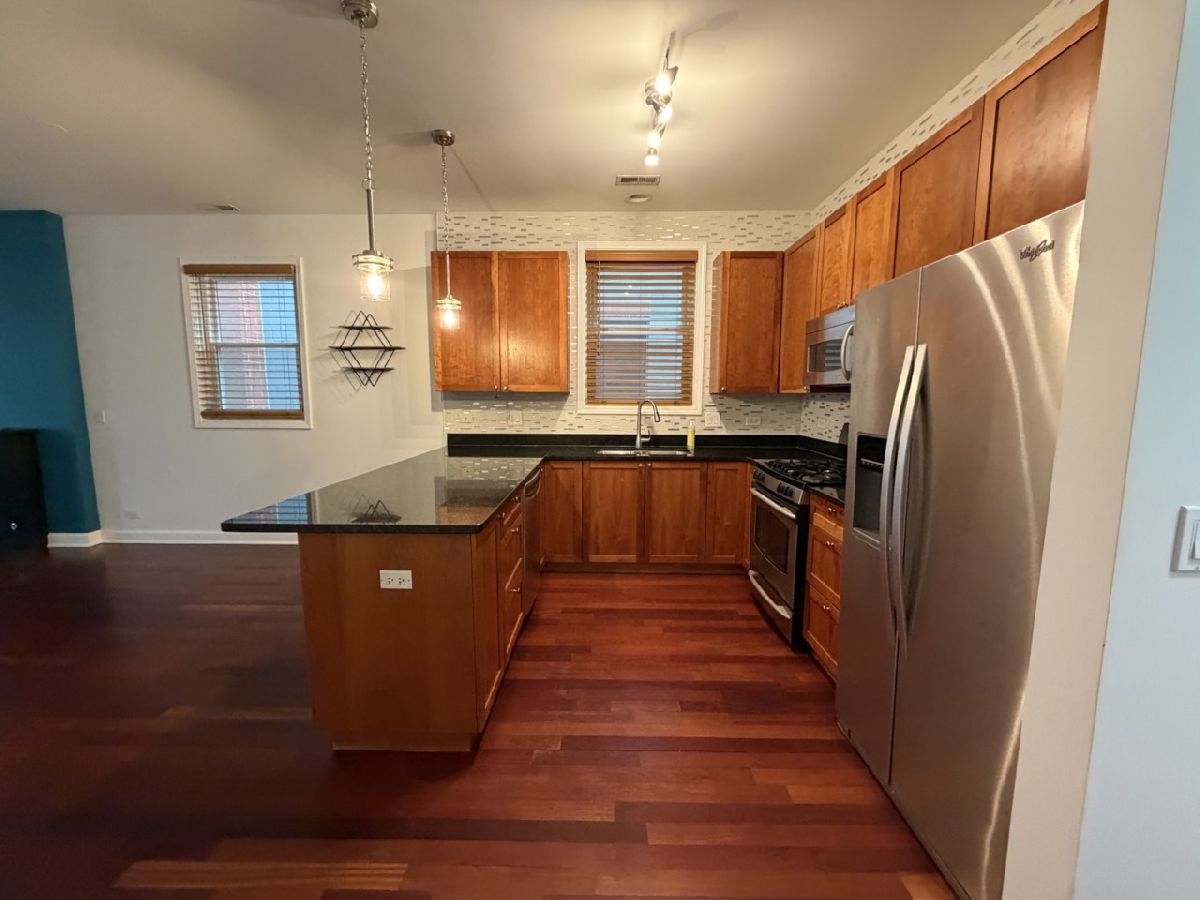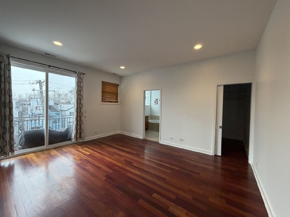 AVAILABLE NOW! Large corner 2 bed/2 bath in a modern elevator building in hot Bucktown! Wonderful open layout offers plenty of flexible living space and two excellent-sized bedrooms, along with a spacious balcony. Rich Brazilian cherry hardwood and fresh paint throughout. Open kitchen offers plenty of tall cherry cabinets, stainless steel appliances and granite counters w/ a breakfast bar. Extra-wide living room is bathed in light from south and east exposures and features a rare wood-burning fireplace w/ gas starter. 16' x 13' master suite w/ a big walk-in closet and luxurious bath w/ dual vanities, separate soaking tub and shower. Large, versatile second bedroom fits a king bed and plenty of furniture and works well as an office. Central air/heat, in-unit washer/dryer. Heated garage parking and extra storage included, along with high speed internet access. Terrific location: steps to the 606 and convenient to the blue line; just a short walk to all the great restaurants/bars/etc. in Bucktown, Logan Square, Wicker Park and Humboldt.