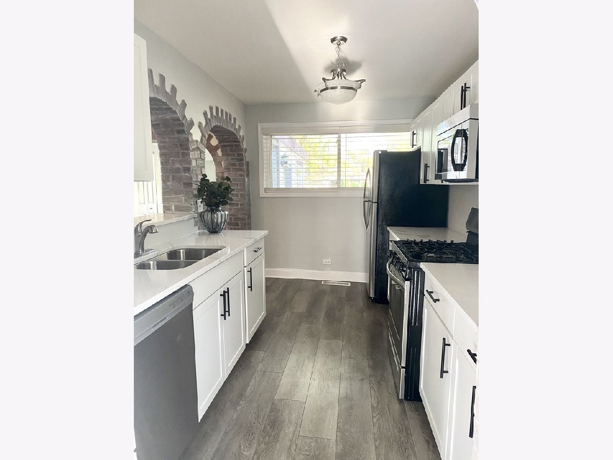Beautiful cozy and unique ,fully rehabed in 2020 bungalo offered for rent in Village of Lansing. Spacious with 3 bedrooms and 1 Bath,gorgeous White kitchen,with Quartz countertops and SS Appliances,Newer everything:mechanicals(water heater 20250,appliances,flooring,paint,washer and dryer,patio doors ,blinds,to much to List . 2020 built one car garage . Close to HWY,restaurants and shopping .