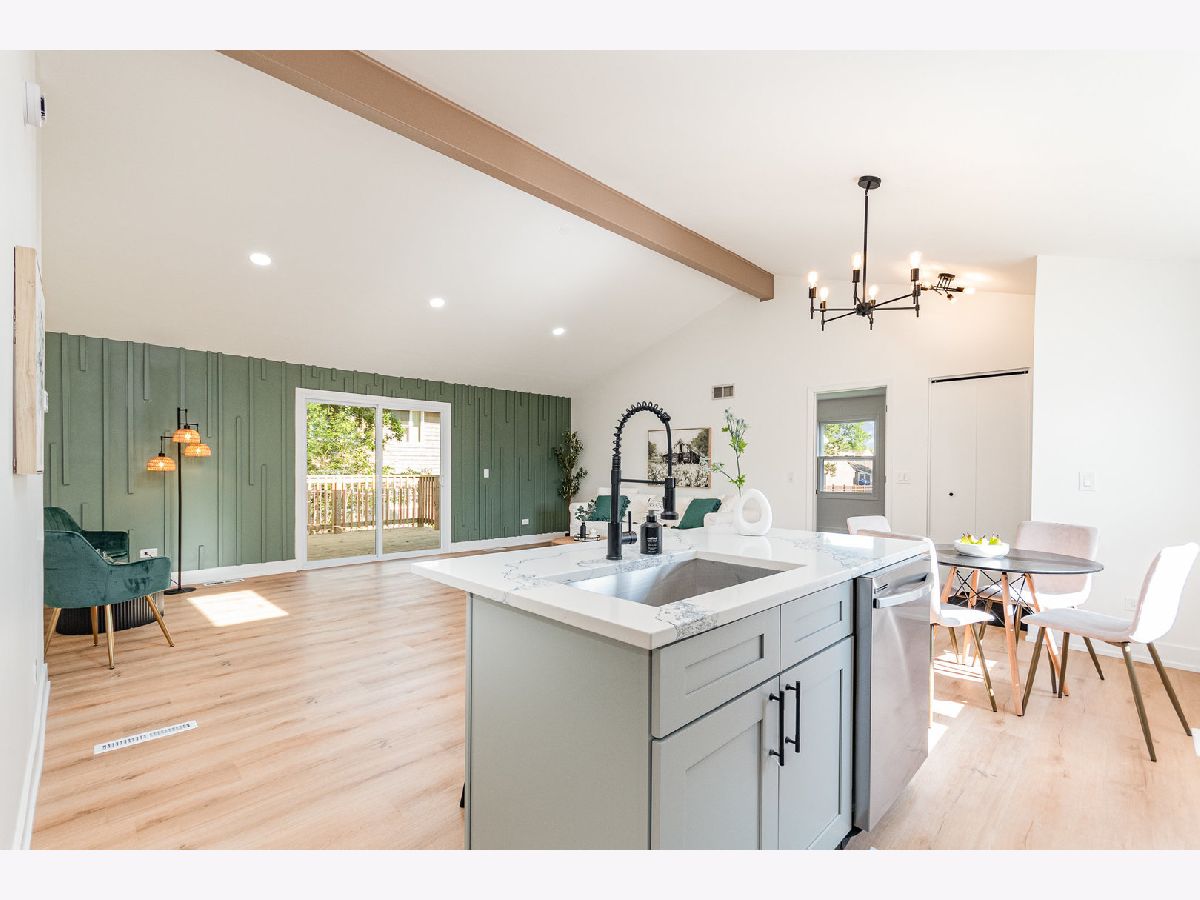 You won't find another rental like this one! Better than new and totally renovated 4 bed, 2 bath ranch home with full finished basement. Open concept layout with vaulted ceilings in the living areas including the fabulous eat-in kitchen with new cabinetry, quartz counters, ss appliances, island, skylight and new LVP flooring throughout. Spacious LR and adjacent eating area with sliders to a large deck and private yard. Sizeable primary bedroom with a feature wall and an ensuite remodeled full bathroom with w/i shower and large closet. 2 additional main level bedrooms and another stunning updated full bath. The lower level has a massive FR, laundry area, storage and 4th bedroom. Attached 2 car garage. Pets are allowed with additional security deposit and monthly rent. New cabinets/vanities, appliances, flooring, lighting, and paint throughout. Near golf courses, shopping, restaurants, Six Flags, Hunt Club Aquatic Center, award winning Gurnee schools, the Metra and I94.