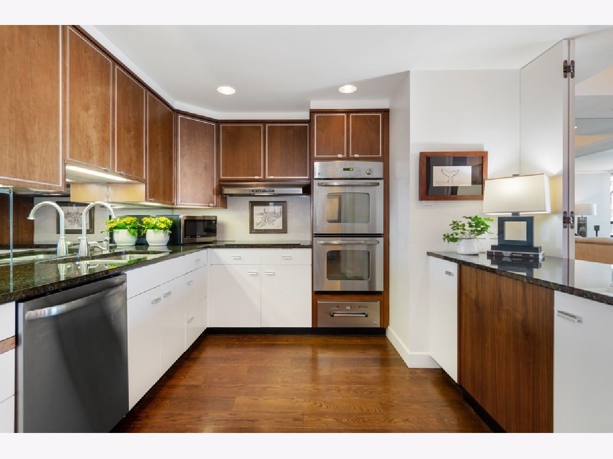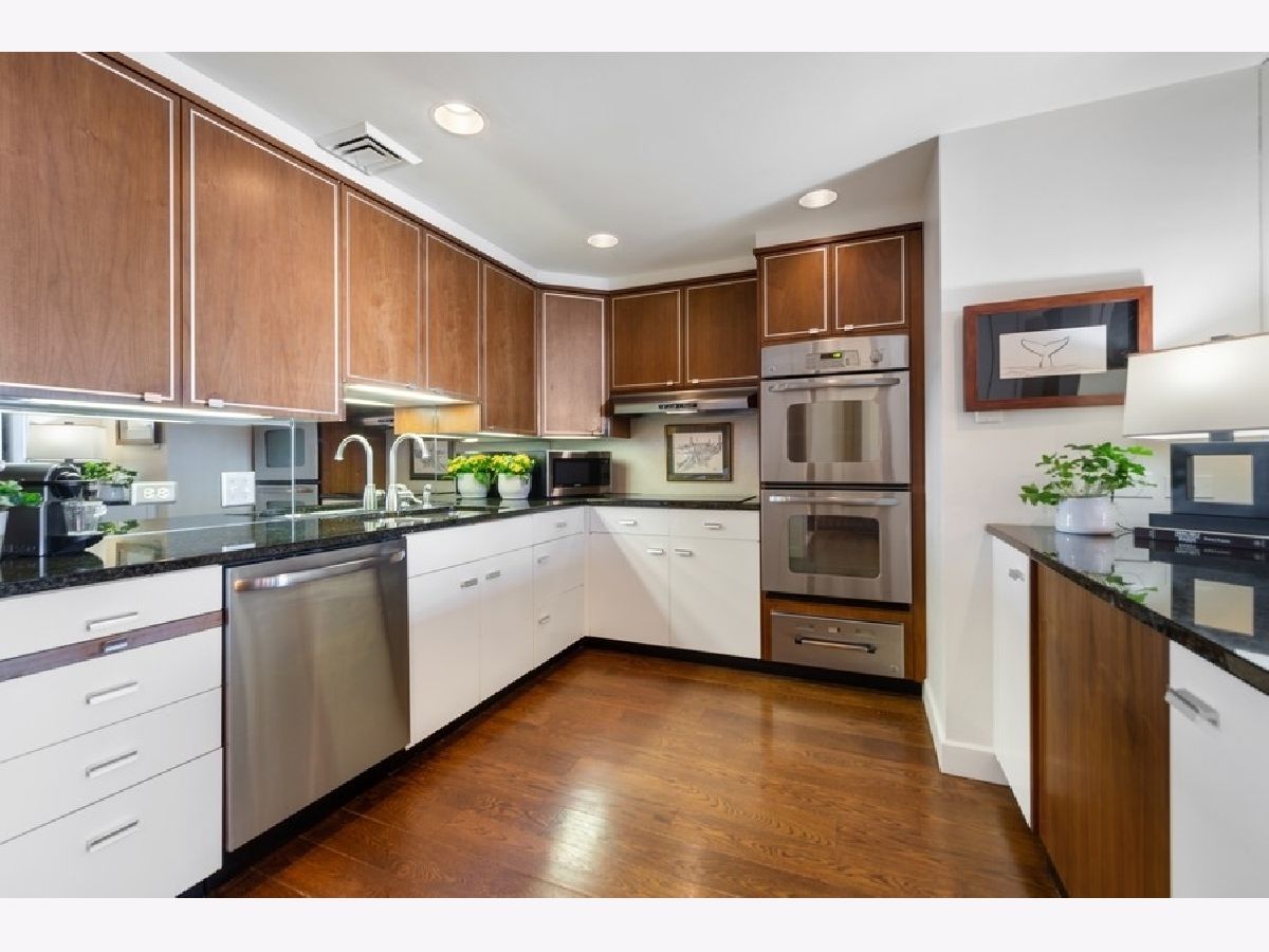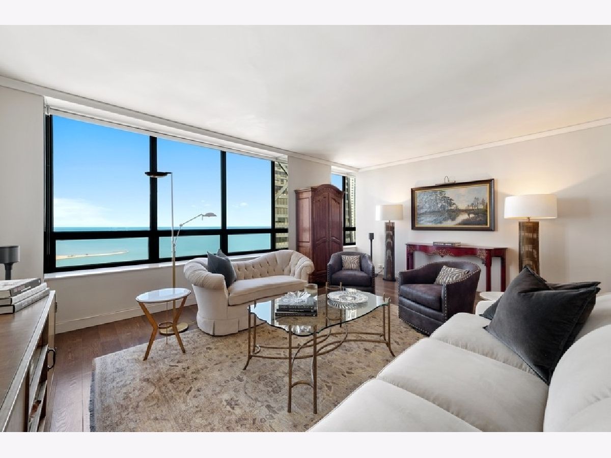 Water Tower residences offers this exceptional- north facing - 1775 square foot - 2 bedroom/2 bath residence featuring peaceful, stunning views of Lake Michigan and the shoreline from oversized windows. Spacious floor plan with walnut hardwood floors offers large room sizes for easy living and gracious entertaining. Large foyer, living room, separate dining room with wet bar, oversized kitchen with light wood/white blend cabinetry, granite countertops, stainless steel appliances + walk in pantry. Primary suite with two walk in custom closets and luxurious bath equipped with double sink vanity, soaking tub, separate shower plus additional closets, oversized storage cage, large laundry room with side by side washer/dryer and in-unit trash chute plus lots of in unit storage which are just some of the features which make this home a treasure! And living above the - renovated exclusive Ritz Carlton Hotel offers amenities to simplify or enhance your life and create that resort like living environment. On site valet or self-parking options available to residents and their guests. Dogs welcome!
