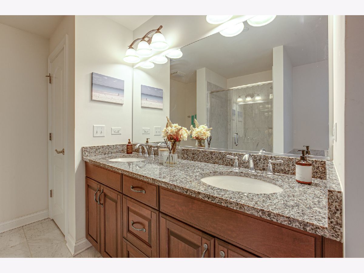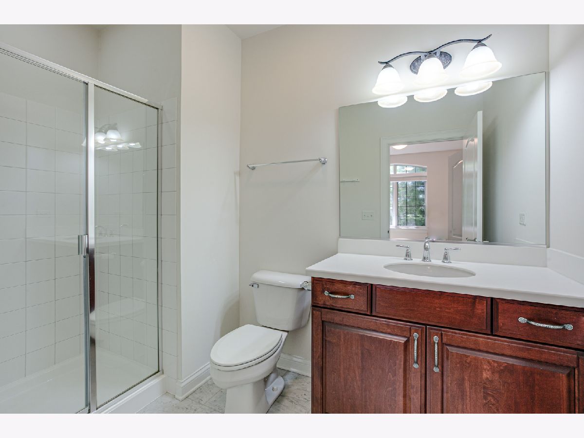 One of a kind first-floor end unit with spectacular pond views in upscale Amberley Woods Condos! Private wooded setting. Ten-foot ceilings, custom arches, fireplace, 2 bedrooms/2.1 baths, and den with French glass-paneled doors and transom window opening to the living room. Hardwood floors, granite kitchen counters, Jenn Air stainless appliances, marble & granite master bath. Watch the sunrise over the peaceful pond and bridge through the dramatic over-sized palladium window in the master bedroom. Private enclosed balcony with natural gas outlet for BBQ. 1 parking space, bike wall rack and storage cage in heated underground garage. High end construction offers very quiet living. Enjoy the ease & convenience of true luxury living in a fabulous location close to shopping, restaurants, commuter train & only 25 minutes to O'Hare. Also enjoy access to the beautiful Lake Forest beach/boat harbor on Lake Michigan.