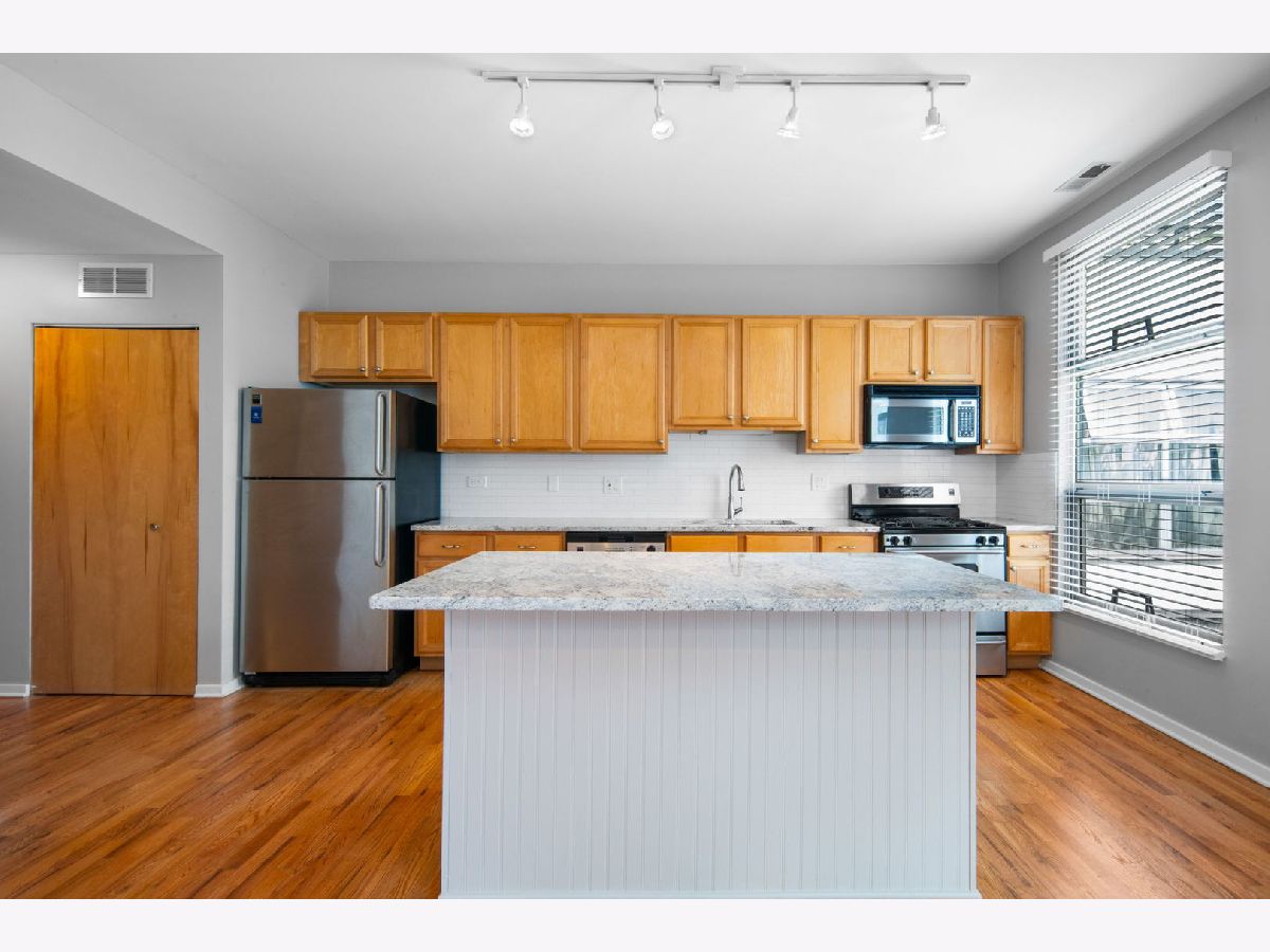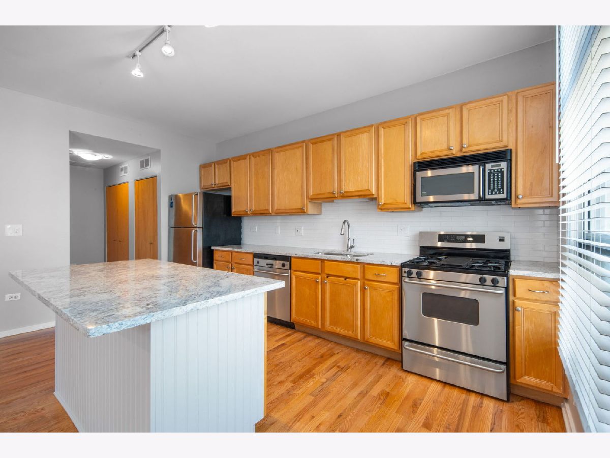 South Loop! Available mid April. Top floor, bright and sunny updated one bedroom in a gated community with garage parking and extra storage. Walk right into the large open floorplan with a huge kitchen and plenty of space for living room and dining table. Unit has recently been upgraded with - new granite kitchen countertops, new tile kitchen backsplash, new kitchen island surround, new laminate floor in bedroom, new blinds, new quartz countertop bathroom vanity, new bathroom vanity light and mirror, new lighting in main living areas, Nest thermostat, new smoke and carbon monoxide detectors. The private balcony overlooks the pretty and serene courtyard. Enjoy this large bedroom with walk-in closet! There is a big storage unit available and garage parking is included in the price. Fantastic South Loop location! (No smokers)