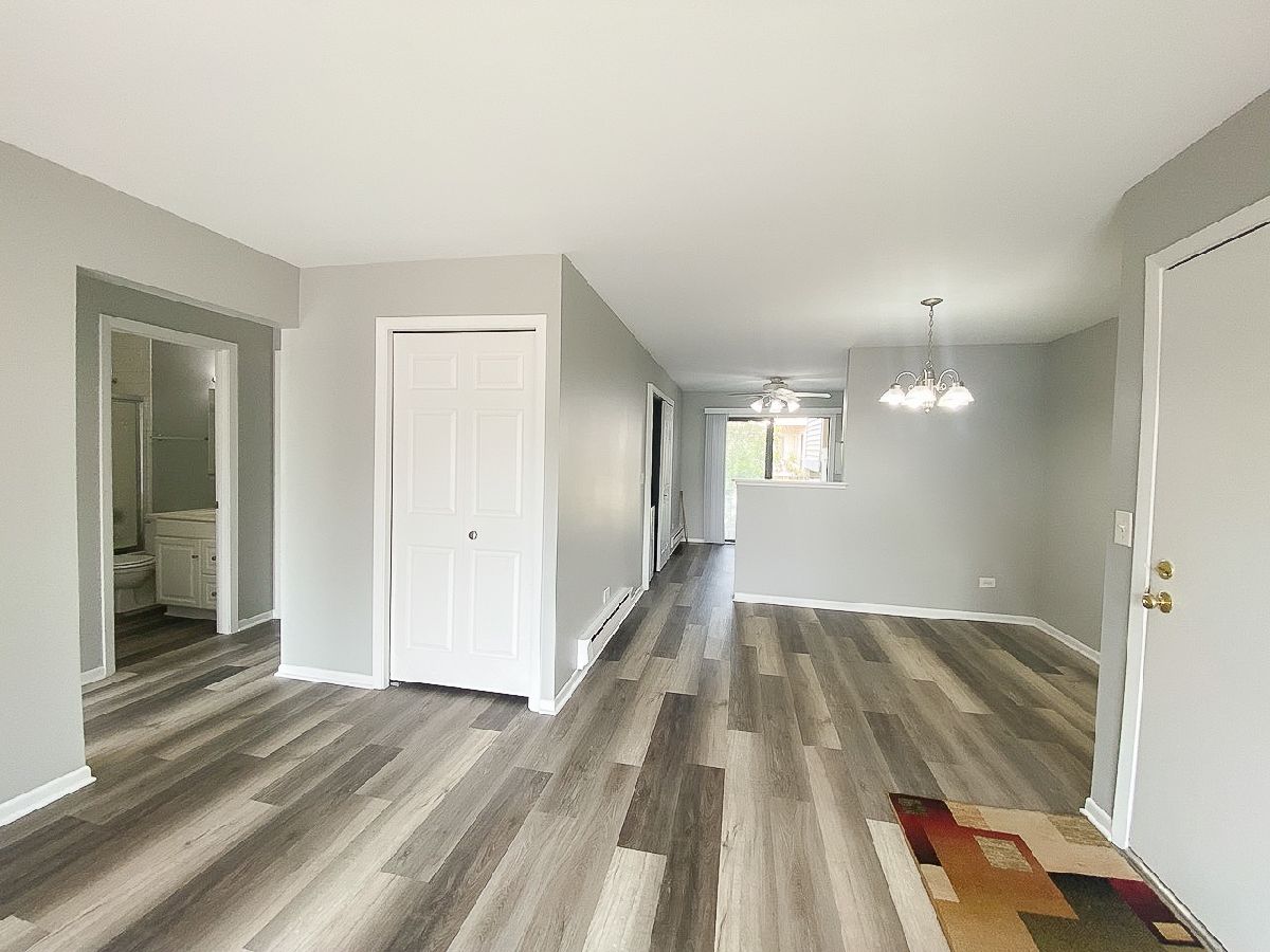 BRIGHT AND AIRY WATERS EDGE CONDO WITH BEAUTIFUL VIEW OF POND! FEATURING WOOD LAMINATE LIVING AND DINNING ROOM FLOORS, FRESHLY PAINTED, NEW LIGHT FIXTURES, CEILING FANS, STACKABLE WASHER AND DRYER IN THE UNIT, WHITE KITCHEN CABINETS WITH SS SINK AND FAUCET, VERTICAL BLINDS, UNIT IS ELECTRIC HEAT AND COOKING - NO GAS, RENT INCLUDES WATER, SCAVENGER SERVICE, YARD MAINTENANCE, AND SNOW REMOVAL. DETACHED GARAGE AND EXTRA STORAGE, RAISED PANEL WHITE ENAMELED DOORS AND TRIM THRU-OUT, UNIT HAS NICE CLOSET SPACE, DESIRABLE SECOND FLOOR UNIT, AVAILABLE IMMEDIATELY, WALKING DISTANCE TO SHOPPING CENTER, CLOSE TO EXPWYS AND SHOPPING! ALL APPLICANTS OVER 18 MUST COMPLETE A CREDIT AND BACKGROUND CHECK AND MUST HAVE A CREDIT SCORE OF 680 OR HIGHER.
