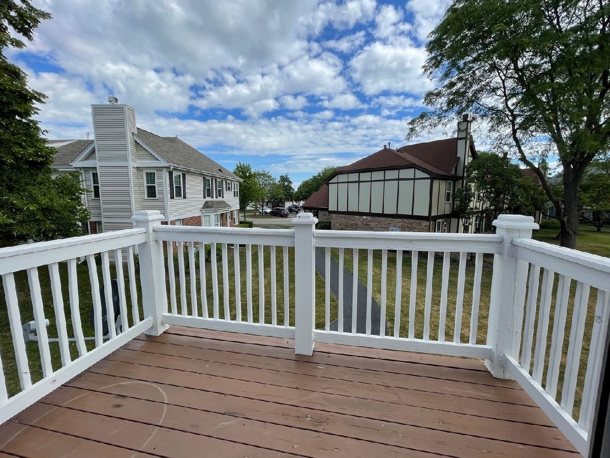 2nd floor ranch with vaulted ceilings. The kitchen features an eat in area with a lovely bay window, a closet pantry, and tile backsplash. Dining room is right off the kitchen and has sliding glass doors to the balcony overlooking green space. Master bedroom suite includes dual closets, vaulted ceilings, and a private master bathroom with separate walk in shower. Great location in the complex within walking distance to the pool and clubhouse. Just minutes from shopping and I90. Schaumburg School District 54 schools and Dist 211 for high school! Rent includes water.