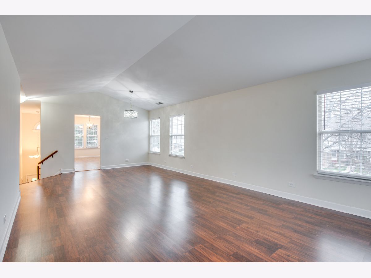 Cathedral ceilings add a dramatic effect to the huge living room and dining room, featuring wood laminate floors and a cozy fireplace. Located in the award-winning Schaumburg school district, this beautiful penthouse has been updated over the past 10 years. The kitchen boasts all stainless steel appliances, and there are laminate floors in the kitchen, living room, dining room, and hallway. A new washer and dryer are also included. Relax in the large master bedroom with a walk-in closet and a second closet leading to a private master bath with a garden tub and separate shower. You'll love the popular location with a greenbelt view from your balcony and a short walk across the street to the pool and clubhouse. Close to shopping, I-90, and forest preserve trails. The assessment includes exterior maintenance, water, lawn care, snow removal, garbage pickup, pool, and clubhouse access.