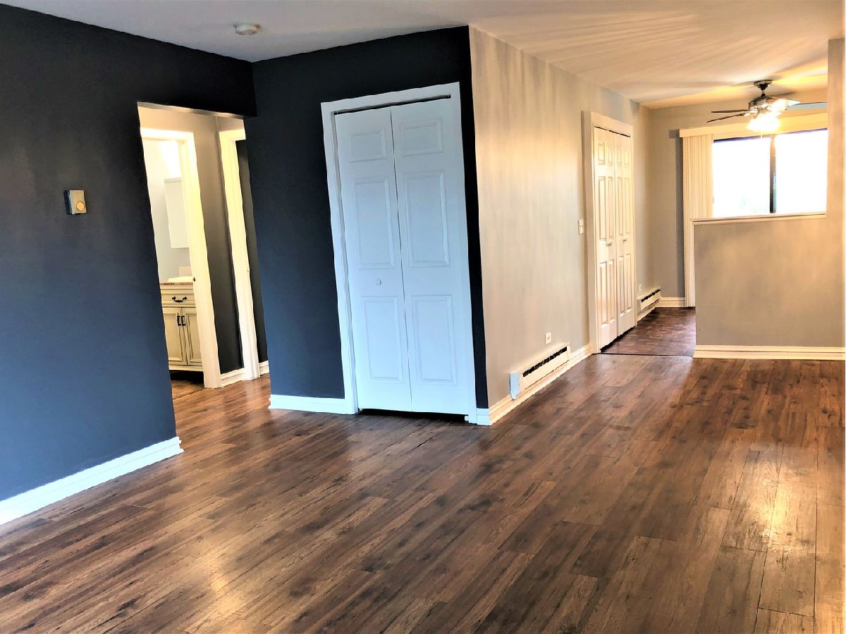2 Bedrooms, 2 Bathrooms AND a garage space ~ Freshly painted throughout ~ Pretty new white 6-panel doors ~ NEW in unit laundry ~ Stunning wood laminate flooring ~ Large primary bedroom with walk-in closet and bath ~ Private balcony space ~ Close to shopping and expressways ~ NO PETS or SMOKING ~ You will not be disappointed!