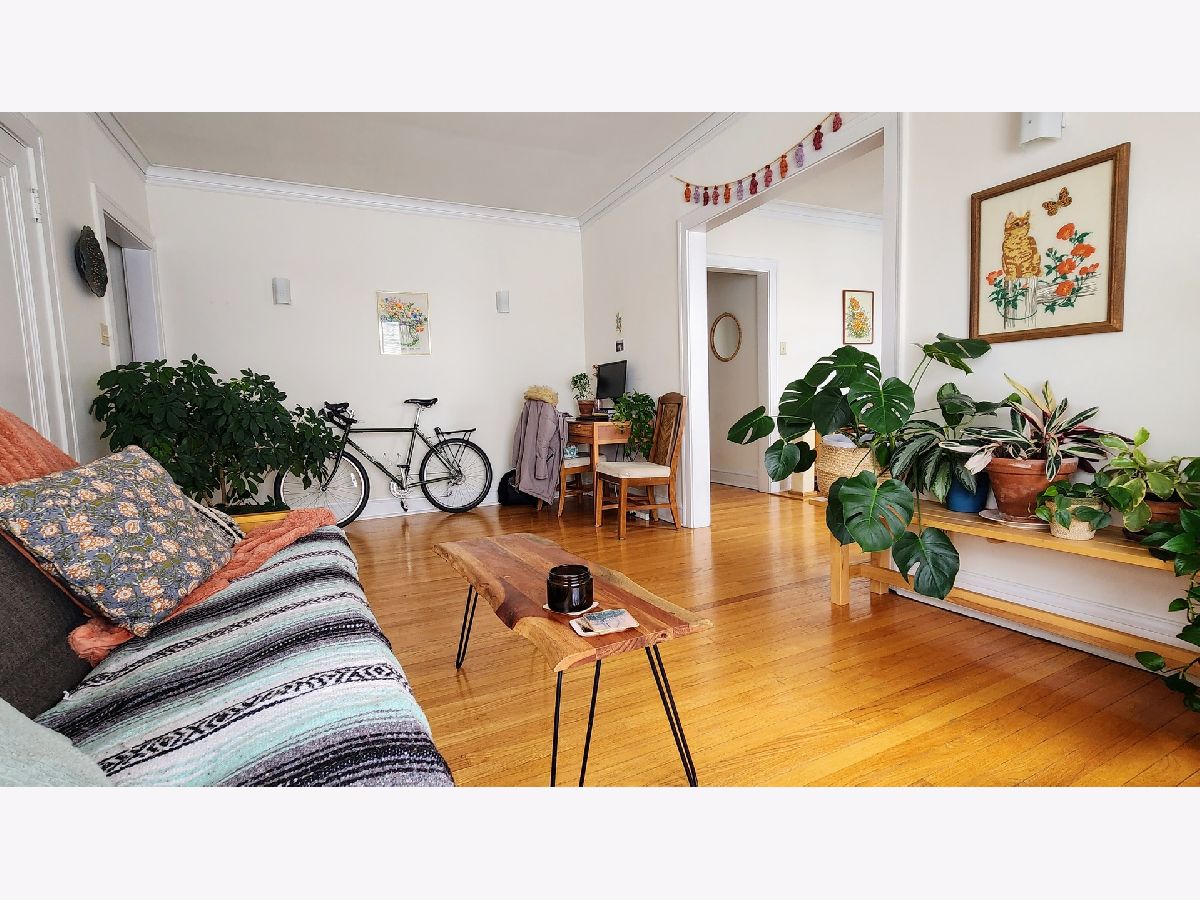 This is a very spacious top-floor 1-bedroom apartment available for April 1st move-in. The unit has 4 rooms filled with windows, there's a living room and dining room, a kitchen, a bathroom, high ceilings, and a hardwood floor throughout. There is plenty of room to have a home office or home gym if needed. Heat, water, and trash are included in the rent. Tenants pay for electricity and cooking gas. The building is within walking distance of the Irving Park Brown Line station and all the great restaurants and shops that North Center has to offer.