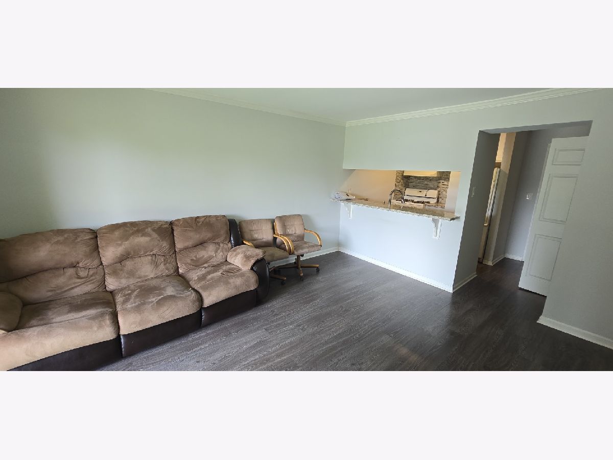 Well maintained 1BR condo. Newer paint, Pergo floor, newer bathroom white kitchen cabinets & appliances, refrigerator, stainless steel sink, granite counter top, breakfast bar. Pond view balcony. 6 panel doors throughout. Bath has 1-piece whirlpool tub/shower. 1 parking space included, guest parking available. I88 Tollway nearby.