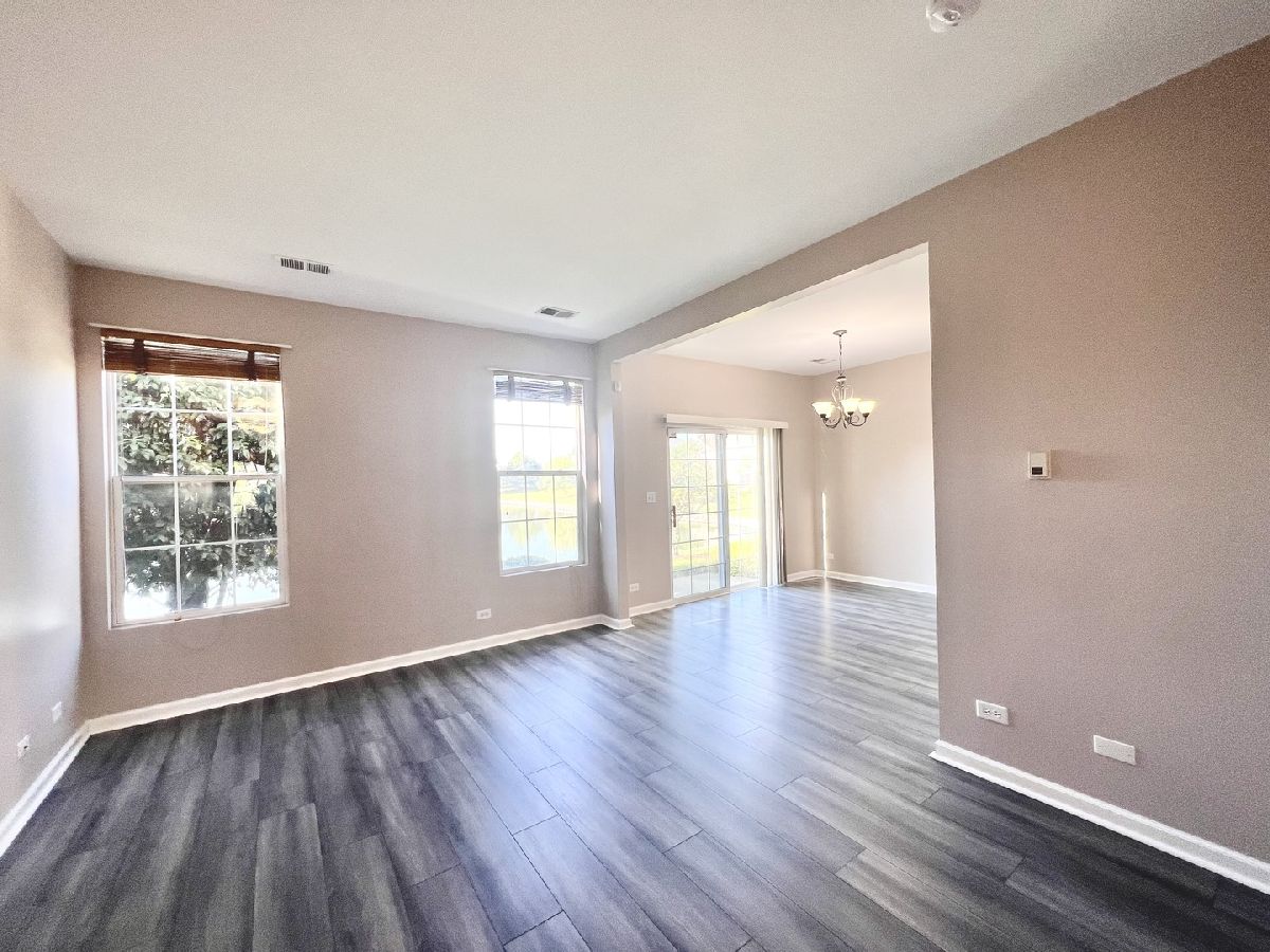 This popular waterfront Bridgewater townhome is available for move in. The kitchen features white shaker cabinets, granite and stainless steel appliances. The living and dining rooms feature wooden flooring with an open flow and great views of the pond. Neutral painted throughout. Enter from the garage into the laundry/mud room with additional cabinetry for storage. The main bedroom has cathedral ceiling, walk-in closet and an ensuite bathroom with dual vanity, separate shower and large soaking tub. Two other bedrooms share the hall bath. 2 car attached garage. Close to everything! Starbucks, Dunkin Doughnuts, Meijer, Portillo's, Chipotle, the list is endless! Metra station 1 mile away, and only 2 miles to I-88! No pets please! Pictures are 1 year old.