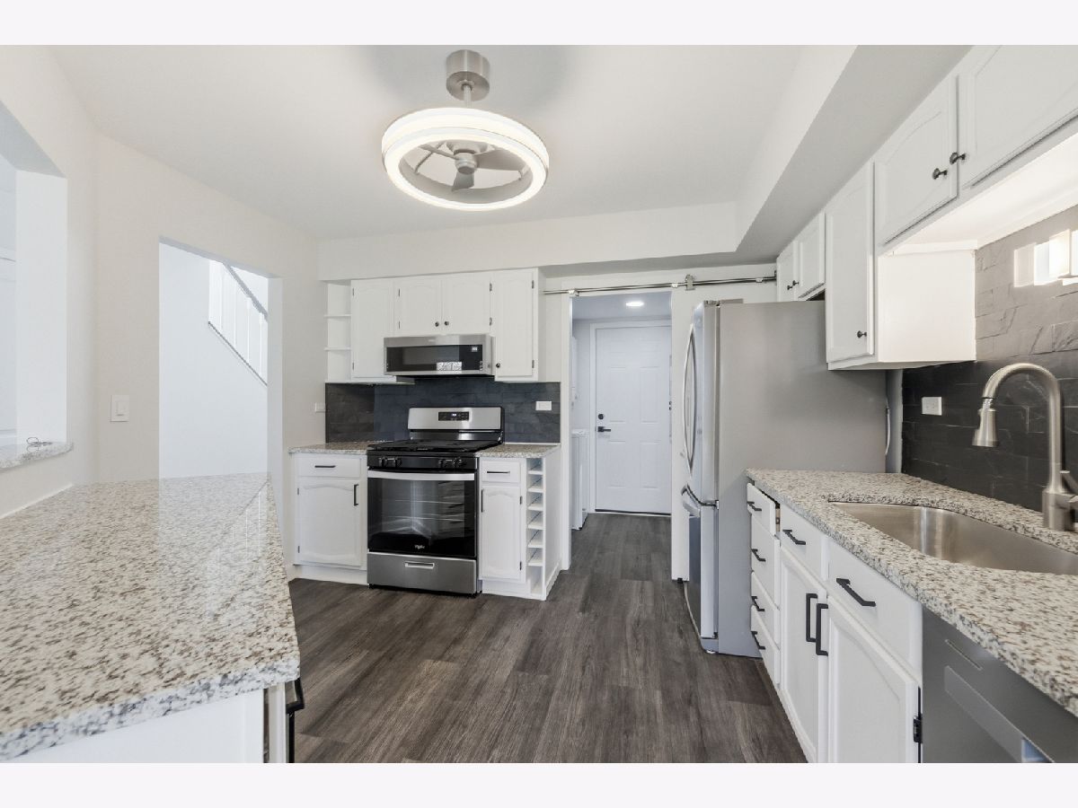 Welcome to this Beautifully updated 2 bedroom, 1.5 bathroom townhome with attached garage, pool and clubhouse. This spacious home has been recently updated throughout and features all brand new windows, sliding glass patio door, along with a full set of new appliances including stove, dishwasher, refrigerator, washer, and dryer. Additional updates include new interior doors, fresh paint, updated kitchen hardware, granite counter tops, stylish accent walls, and modern lighting fixtures. The upper level offers just installed new carpeting and ceiling fan lights in both bedrooms, creating a comfortable and refreshed living space. The layout features a convenient Jack-and-Jill bathroom accessible from both bedrooms, complete with a double sink vanity for added functionality. The primary has a walk-in closet with custom built ins. The home provides a functional layout with generous room sizes and plenty of natural light. Additional improvements include a newer AC and furnace, providing added comfort and efficiency. Enjoy a private patio that backs to open green space yard, with a walking path directly behind-perfect for relaxing or enjoying the outdoors. Conveniently located close to shopping, dining, expressways and everyday amenities with highly regarded schools. Includes water, lawn and snow and scavenger removal. This well-appointed rental offers a comfortable and convenient lifestyle in a desirable community. Truly a place to call home.