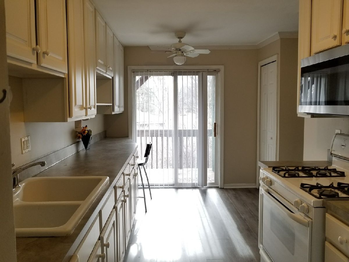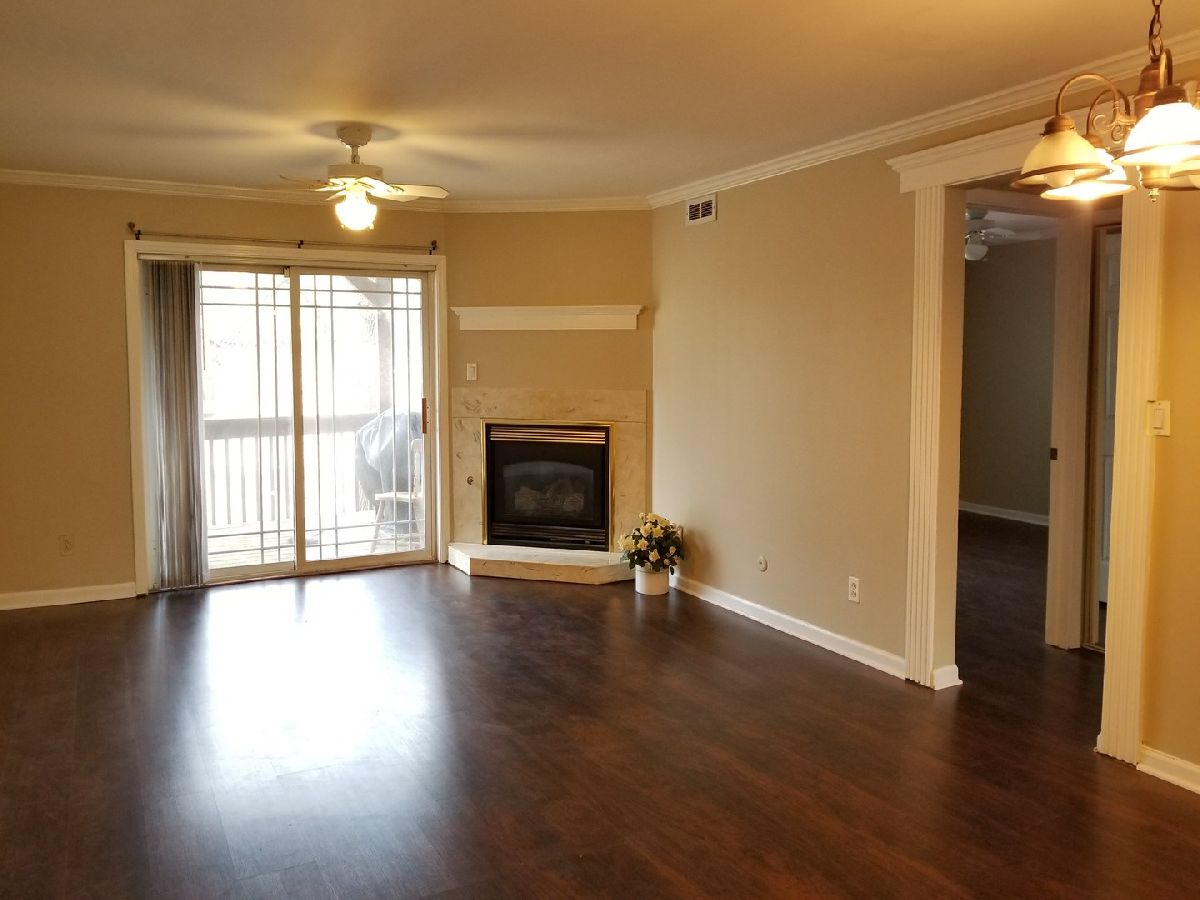 Beautiful Completely remodeled spacious and bright 2 bdr 2 bath condo. Dark Laminate floor in living and dinning room. Hard wood floors in Kitchen and bathrooms. Neutral color rooms. Spacious kitchen with upgrade white cabinet & Eat-in breakfast area. SS appliances. Doors to 2 PRIVATE Balconies with creek and tree view. Walk in closet in Master Bdr. FP in LR with doors to balcony + gas grill, storage, Laundry in the unit. Gas, water and heat is included. You only need to pay the electricity. Close to I88. Owner is licensed real estate agent.