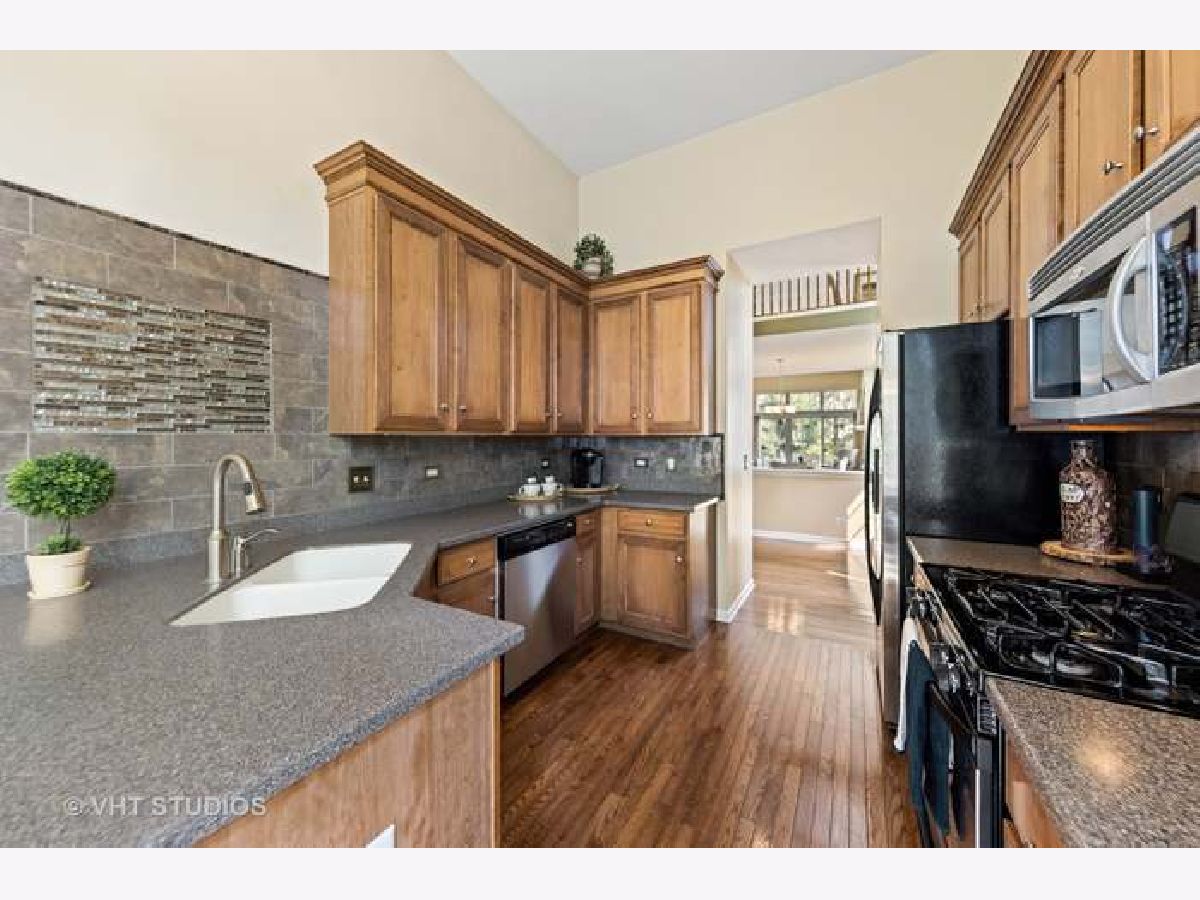 This END UNIT is absolutely Beautiful. 2 BD/2.5 Bath Townhome is MOVE-IN READY! First Floor Master Bedroom Suite with Full Bath and Jacuzzi Tub. Gorgeous Kitchen with Backsplash and Stainless-Steel Appliances. 42' cabinets, Lots of Natural Light, and Hardwood Floors! Vaulted Ceilings, Floor to Ceiling Windows. 1st Floor Laundry, Spacious Loft upstairs and a Large Finished Basement. Tons of Storage in the crawl space! Beautifully Landscaped Backyard. Located on a quiet cul-de-sac in Desirable Bartlett. LOCATION! Conveniently Located Near I-90, Shopping and Schools!