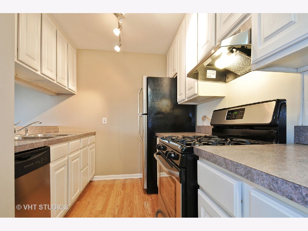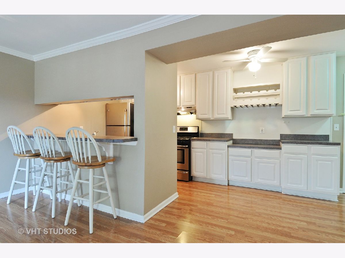Lovely 3rd floor 1 bedroom, 1 bath condo in secured building overlooking pond & trees. Minutes to outlet mall, train station and I-88, a commuters dream. Nice kitchen, plenty of cabinet storage and counter space, white cabinets, breakfast bar for additional seating, desk area, wine rack, space for smaller table, stainless steel appliances stay including dishwasher, built in microwave, refrigerator, gas stove. Spacious master bedroom has walk in closet plus 2nd closet. Bathroom with ceramic tile floor, tub/shower combination. Good size family room could fit L shaped couch, open to kitchen and sliding door opens to balcony. Enjoy relaxing on your private balcony with treehouse views, room for a grill. Coin operated laundry on site and in building. Parking is easy with the assigned parking space. 6/2020 balcony re-stained, carpets cleaned, professionally cleaned. Heat, water & garbage included in association fees. Short walk to parks and trails. Quick close. Move in ready.
