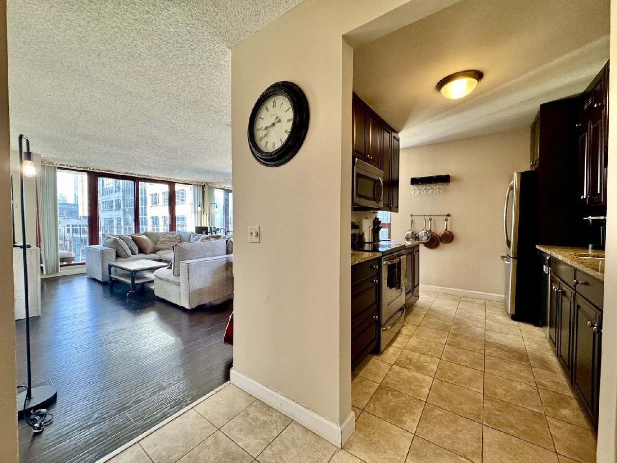 Step into this beautifully upgraded corner unit and instantly feel at home. Flooded with natural light from floor to ceiling wraparound windows, this one bedroom gem offers a spacious layout, modern wood laminate flooring throughout, and an abundance of closet space. Enjoy a totally updated kitchen featuring plentiful, beautiful wood cabinets, granite countertops, and stainless steel appliances perfect for cooking and entertaining. Relax on your large private balcony and take in sweeping views, while enjoying heat, A/C, and internet included in your rent. The building elevates your lifestyle with: 24 hour doorman Fully equipped exercise room Indoor swimming pool Expansive sundeck with Grills Unbeatable walkability to multiple train lines, shopping, restaurants, River Walk, Theater District and more This is truly exceptional value for the area a rare find that won't last. Available January 15, with potential flexibility. 24-hour notice for tours, please.