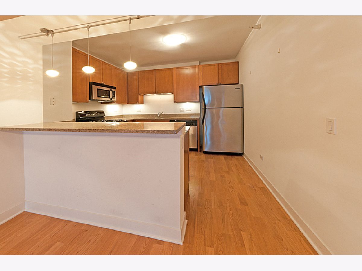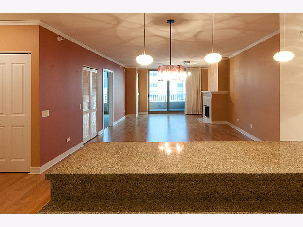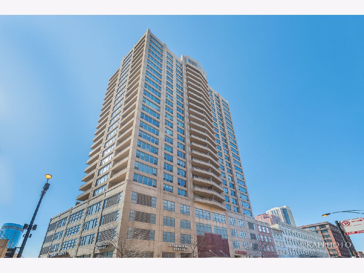 Exquisite, high-floor Fulton Market unit with breathtaking views available 5/1/2026. Balcony access from living room and bedroom. Large living room, dining area, in-unit washer/dryer, hardwood floors, granite/stainless steel kitchen with 42-in. cabinets. Oversized marble bath, gas fireplace, walk-in closet. Heat, A/C, gas, and cable TV included in rent. Full-amenity building: doorperson, exercise room, party room, sundeck, storage, and cleaners. Close to transportation, restaurants, Fulton Market, and more. 1 garage parking spot available for an additional fee. Must see!