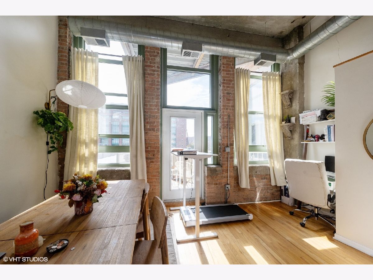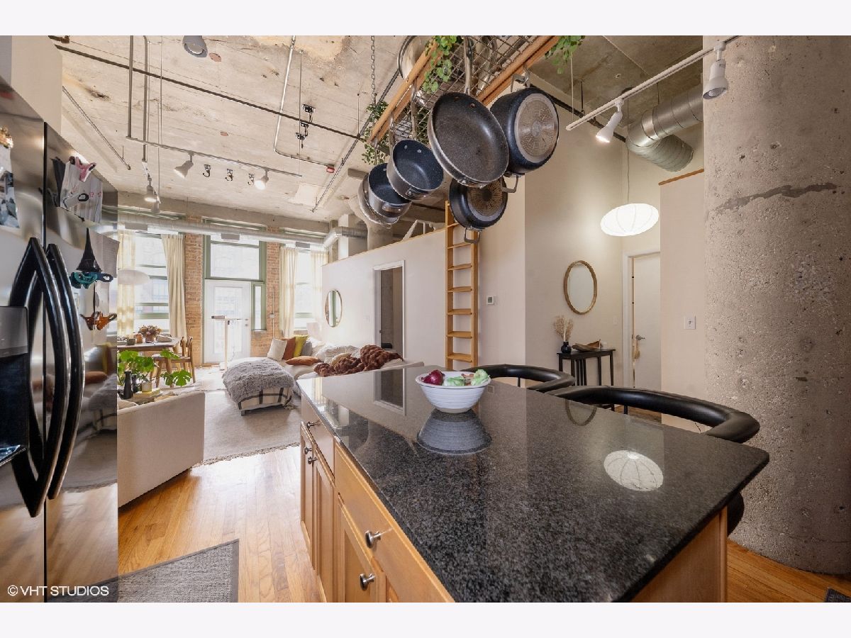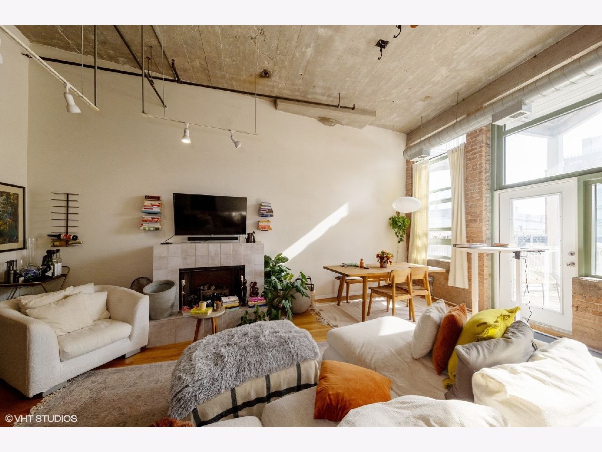 PARKING w/TRUE LOFT LIVING with nearly 13-foot ceilings, exposed brick, natural light throughout from the massive south-facing windows; living space is anchored by a lovely fireplace along with open concept dining. Living space also features an elevated loft space with custom sliding ladder for access; great space for relaxing and reading. Spacious kitchen features granite counters and an eat-in bar. Bedroom is en suite to a walk-in closet with access to a full bath. In-unit laundry. A secured outdoor parking space included with price. Building is well-managed. Excellent proximity and easy access to the lakepath, Lake Shore Drive and major interstates, Grant Park, McCormick Square and other top South Loop amenities in this historic Prairie District home.