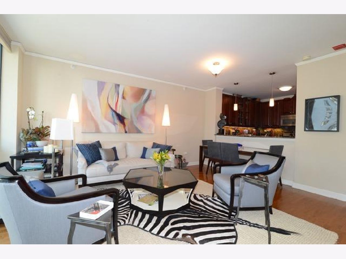 Stylish High floor 2 bedroom/2 bath on the park with fantastic city & park views. Finishes include hardwood, granite, all new stainless steel appliances, marble, master bath with separate shower, washer/dryer & balcony. The Lancaster walks out to 6 acre park with grocery and dining options all around. One of the best sundecks in the city with lounge furniture, landscaping, lighting, grills and music. 2500 s.f. fitness center includes boxing bag and two Peloton bikes. 24 hour door staff to help with carts, deliveries and packages. Close to Loop, Lake, Shopping and Parks but lives like a gated community. One parking space included! Available April 1, 2022.