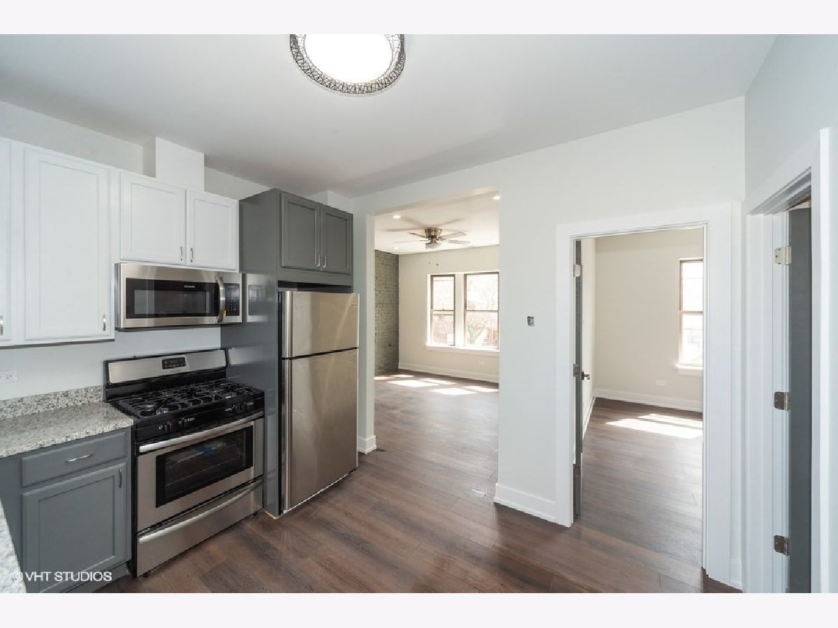 Rehabbed in 2019 this 1 Bed/ 1 Bath plus office/den is in great Roscoe Village location. Unit is nicely upgraded throughout and features hardwood flooring, some exposed brick, and central heat and a/c. Highly upgraded kitchen with grey and white cabinets, stainless appliances and granite countertops. South facing bedroom is nice sized and has good light. Bonus room is great for in home office. Coin laundry in basement. Fantastic Roscoe village location on quiet, tree lined street. Steps from restaurants, shops & bars on Roscoe. One pet under 30lbs ok, must be approved by landlord. $25/month if approved. $500 non-refundable move-in fee. No security deposit. Available June 1.