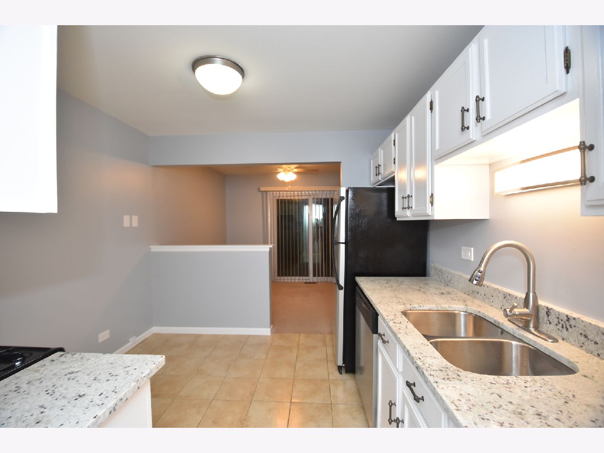 End-unit, super spacious 1 bedroom ranch townhome in wonderful Lexington in the Park. Recently upgraded kitchen with granite tops, light fixtures, sink and appliances. Living room has lovely fireplace and links to the dining room with slider access to the tree-lined gardens and covered patio. NEWER vanity, toilet sink. Walk-in pantry and separate laundry room with full-size washer and dryer. Newer paint, newer carpet. Large bedroom (larger than most 2 bedrooms!) has its own WALK-IN closet. And best of all, park in your very own private garage. Adlai Stevenson School district!