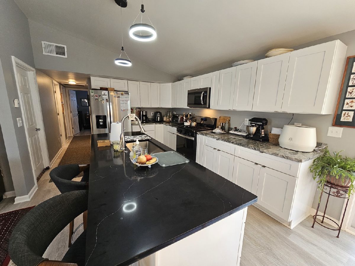 This 3 bedroom open floor plan home with a fenced yard and 2 car garage has been completely redone... top to bottom, inside and out! Offering new LVP flooring throughout, a brand new bathroom with an amazing shower, main floor laundry, and an all new kitchen with new appliances that stay and both quartz and granite countertops. Plus a full basement. This house has all new HVAC, wiring, plumbing, windows, siding, roof, garage, drywall, lighting, paint. Outside is a deck with a privacy fence and fully fenced backyard. Make your appointment for a private showing today.
