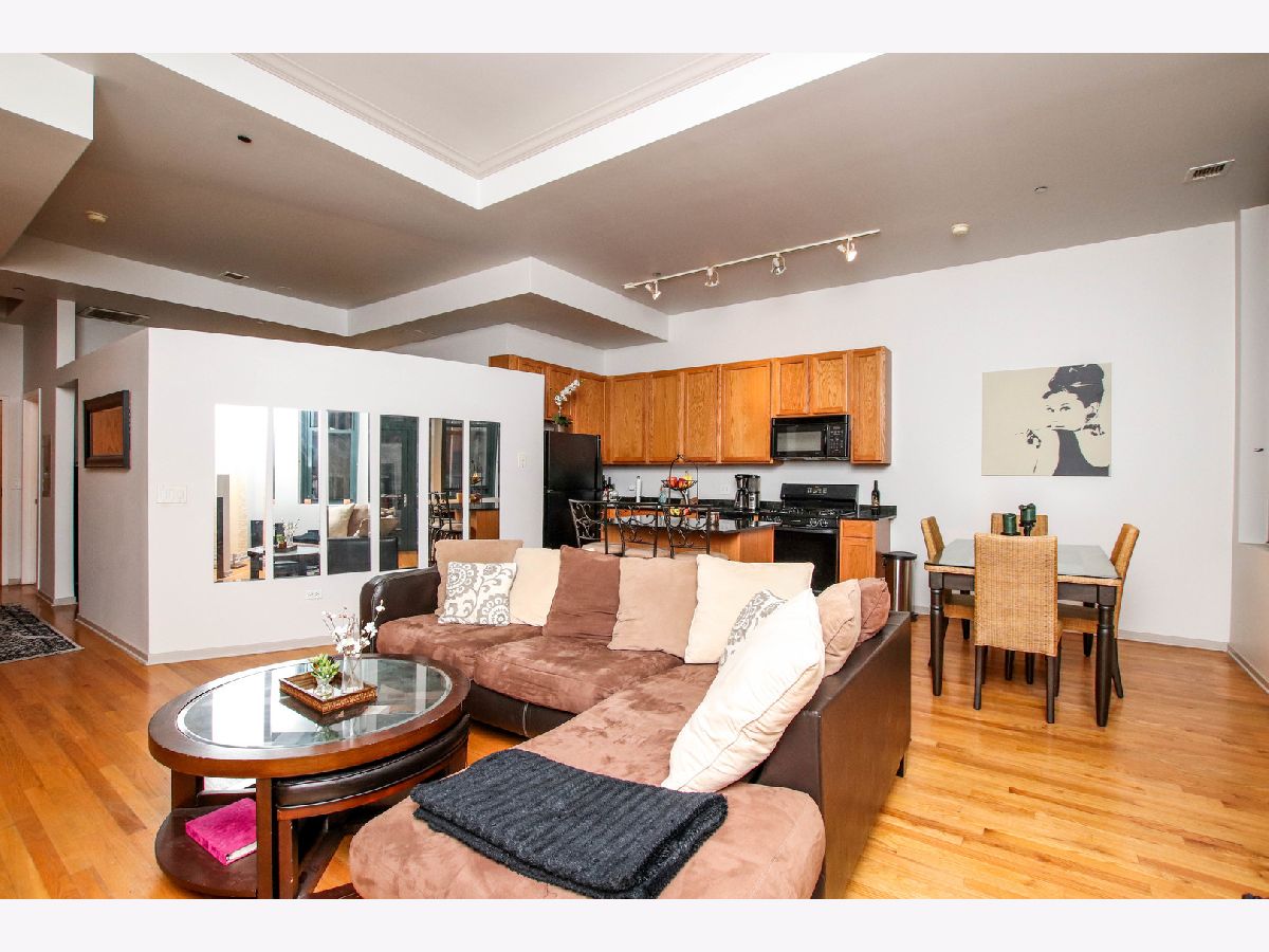 1 BR soft-loft just shy of 800 sq ft in the Loop. Unit features extra tall ceilings, hardwood floors throughout, a gas-log fireplace, washer/dryer in unit and a private balcony. Kitchen opens directly to the spacious living space. Bedroom is carpeted and a true soft loft. Building amenities include an exercise room, business center, 24/7 door-staff, Tide On-Demand Cleaners, Bike room, and a rooftop deck. The monthly rental rate includes Basic Cable, Basic Internet, Heat, A/C, Cooking Gas, water, trash, and sewer. Tenant is responsible for the monthly electricity bill and any upgrades cable options. The building has applicable move-in/out fees. Non-refundable move in fee in lieu of security deposit. Unit is vacant and ready for immediate move in!
