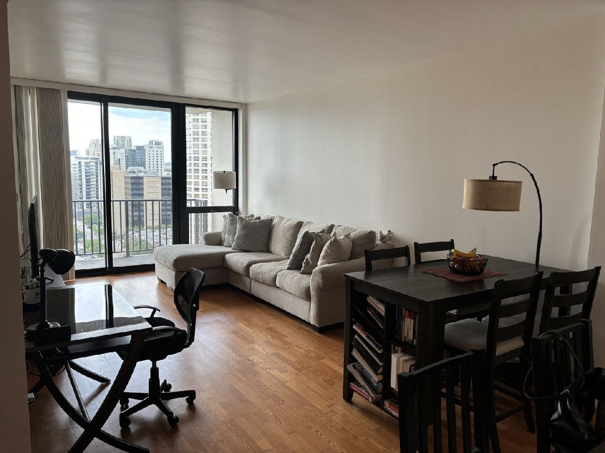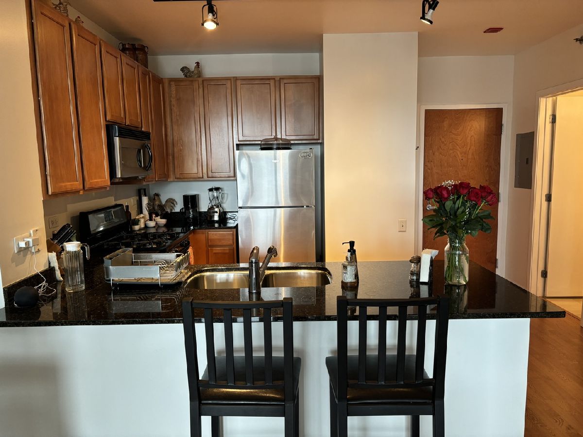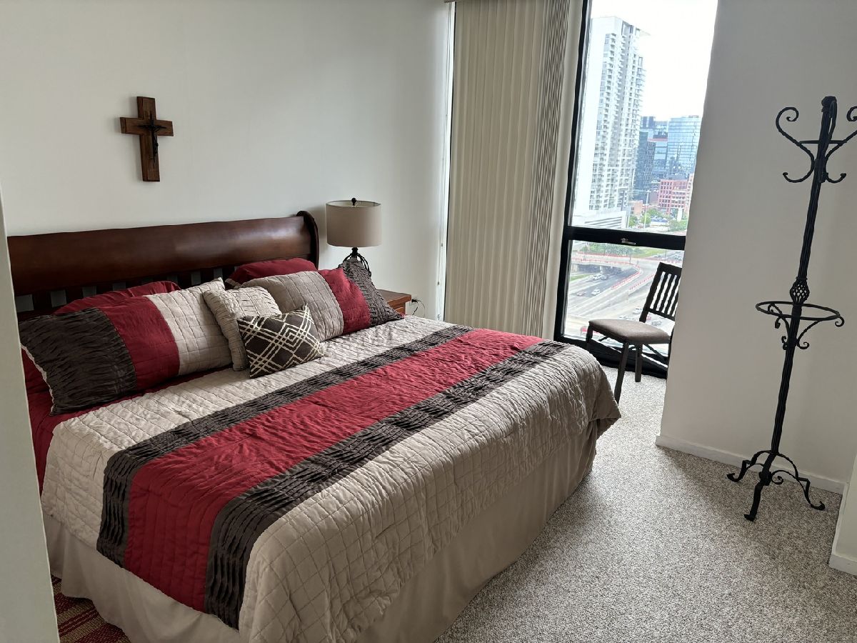 Welcome to this spacious 1-bedroom residence in the vibrant West Loop neighborhood. Enjoy an open floor plan with an abundance of natural light, in-unit laundry, stainless steel appliances, wood-look floors, and carpet in the bedroom. 1 prime garage parking space and 1 half storage cage included. The building offers 24/7 doorman service, a gym, and a party room for your convenience. Ideal for modern city living!