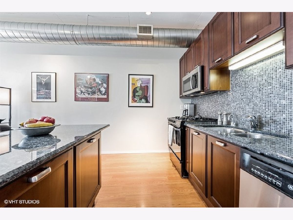 Rarely available 2 bed 2 bath condo in the South Loop's Prairie District. If your needs includes needing large outdoor space this is the one. This home comes with a private 30' x 35' outdoor east facing deck for all of your entertaining needs. Enter and you'll immediately notice the extra high ceilings and open ductwork loft feel but this is not an old converted loft building. It is a 2003 construction high rise that is well built and professionally managed. The large open living space includes a see-thru fireplace with built-in shelving. The adjoining kitchen has granite countertops and stainless steel appliances. Hardwood floors throughout the condo and there is lots of storage in unit. The master bedroom comes with a see-through fireplace and large double sided master closet and en suite master bathroom with dual sink vanity. Second open bedroom has organized closets and is across from the full second hall bath. In-unit washer and dryer. Premium garage parking spot included in rental. Rented through June 2020