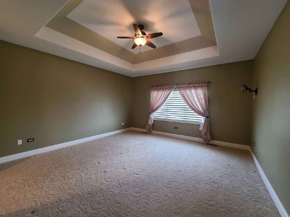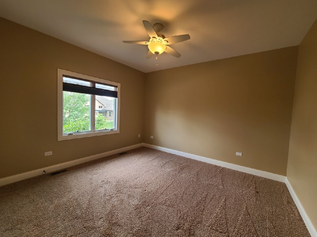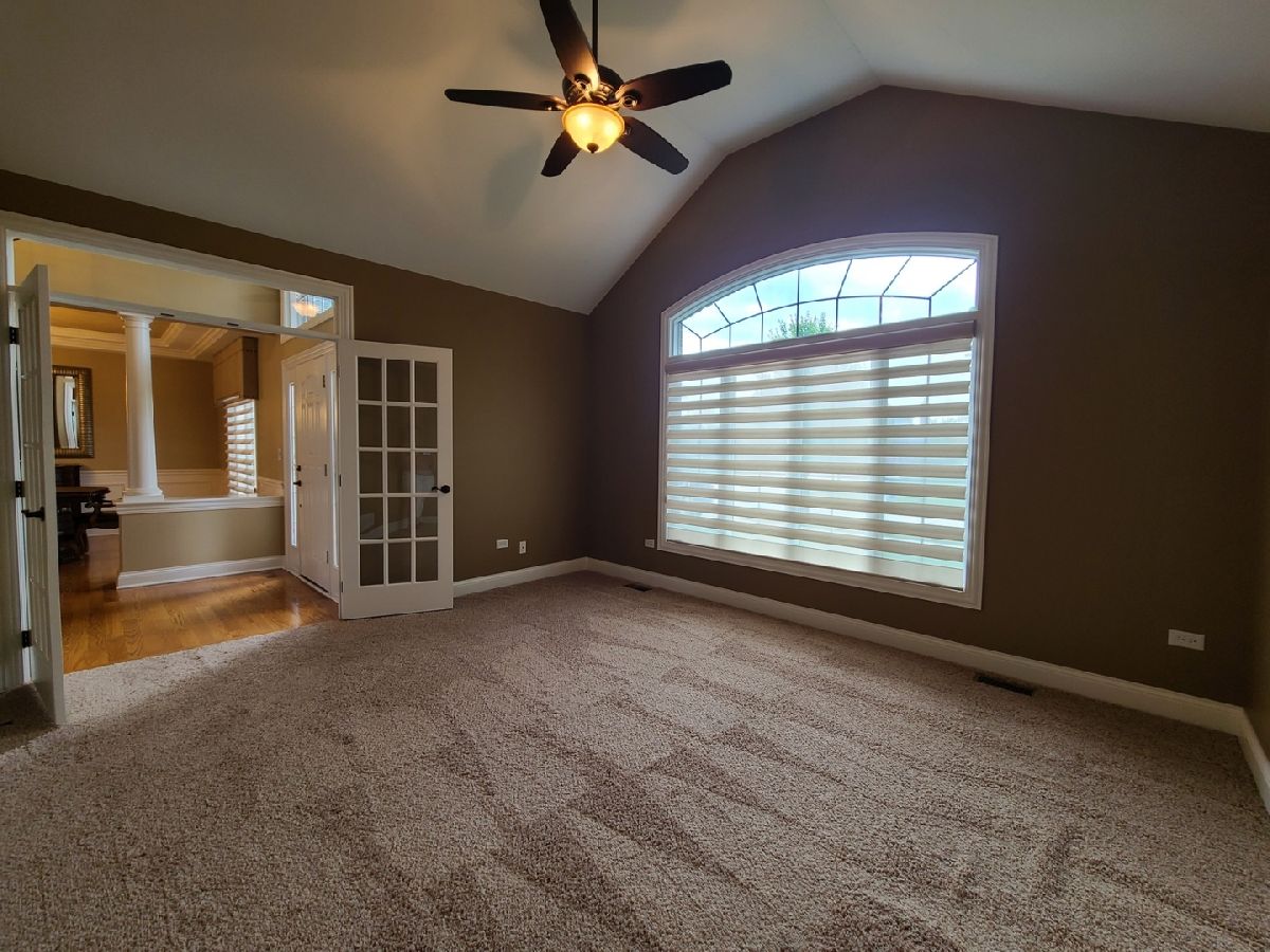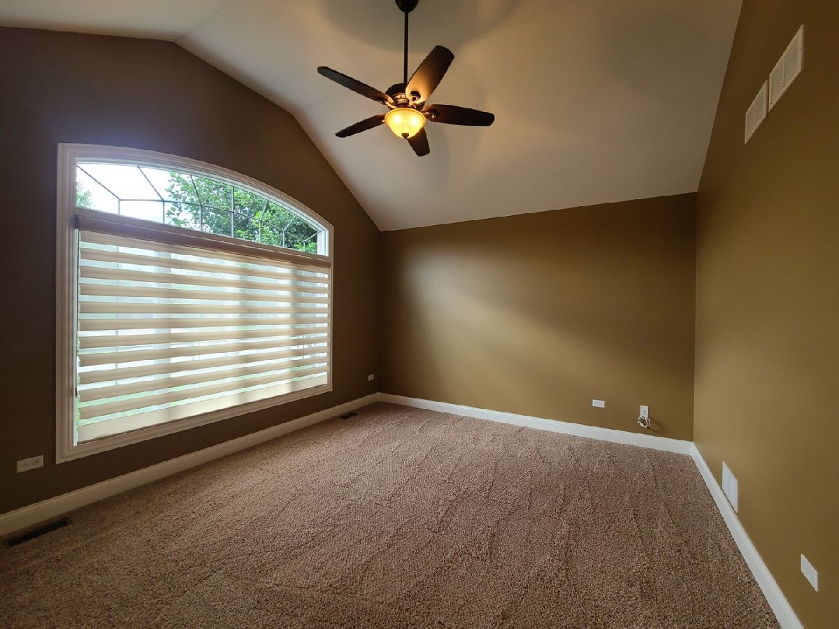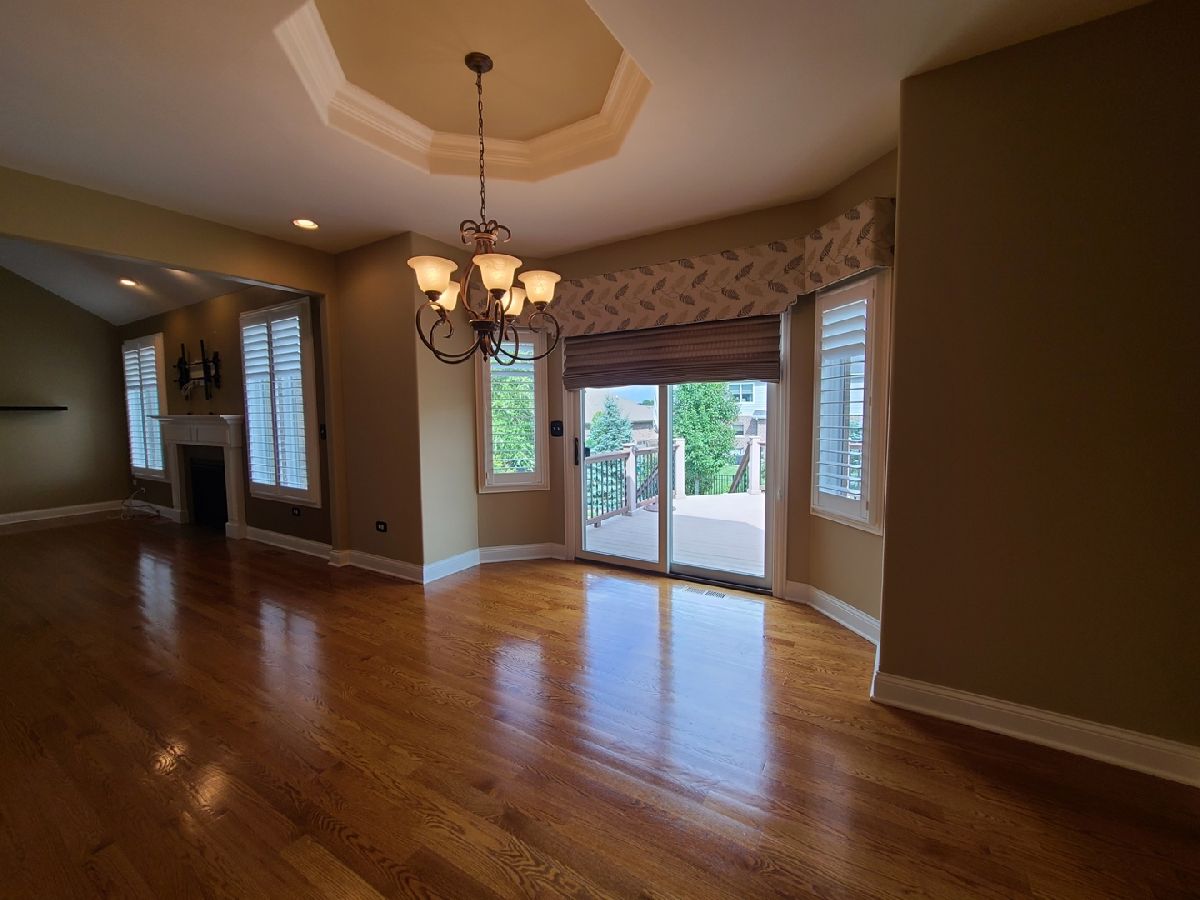 Spacious ranch home in pristine condition awaits your arrival. Split floorplan with three bedrooms on the main floor and a fourth bedroom in the lower level. Work from home in the large office with vaulted ceilings, French doors and large window that overlooks the well-maintained front yard. Beautiful kitchen with center island, granite counter tops, stainless steel appliances, double oven, wine rack and under cabinet lighting. Entertain in the adjacent large living room with vaulted ceilings and Heatilator gas fireplace, beautiful custom wooden plantation shutters and 72-inch ceiling fan. Elegant dining room with two-tiered crown moldings and beautiful crystal chandelier. Beautiful hardwood floors on main floor. White two panel white doors, 5-inch baseboard trim and wide door trim throughout. Custom window treatments throughout home. Oversized primary bedroom with inlay recessed ceiling, walk in closet and second closet. Primary bath has separate sinks, whirlpool tub, and separate shower. Incredible finished lookout basement with full kitchen, full bath, and space for your exercise equipment. Entertain family and friends on the large composite deck and paver patio all the while enjoying the well-manicured fenced in yard with sprinkler system, and beautiful landscape with lighting on trees and home. 3 car garage and extra-large driveway. Close proximity to restaurants, shopping, grocery (Mariano's, Meijer, Jewel-Osco), Target, Walmart, health club, sports club, Movie Theater (AMC), and so much more. This is truly an amazing home in a terrific location available for immediate occupancy. NO PETS, Security Deposit = 1 MO RENT.