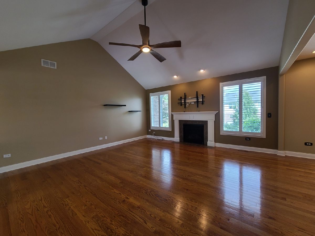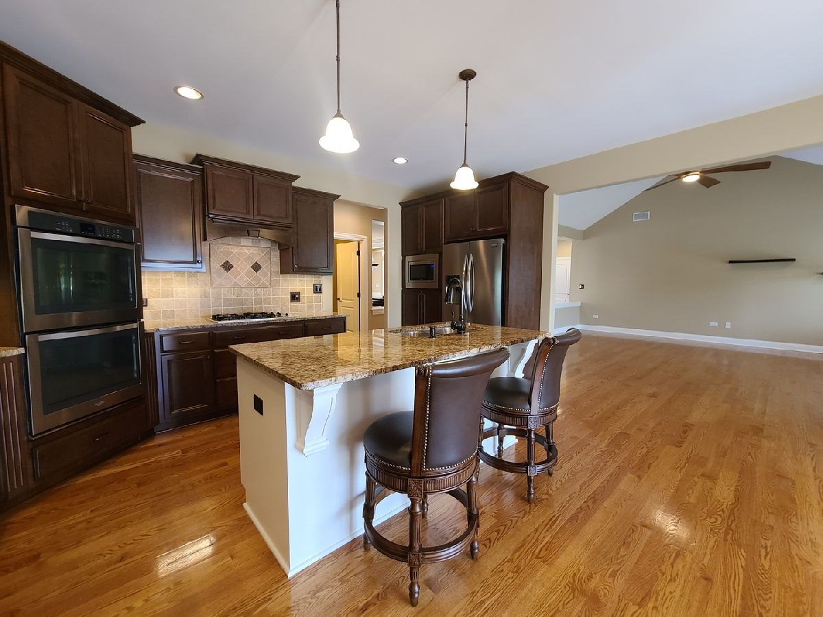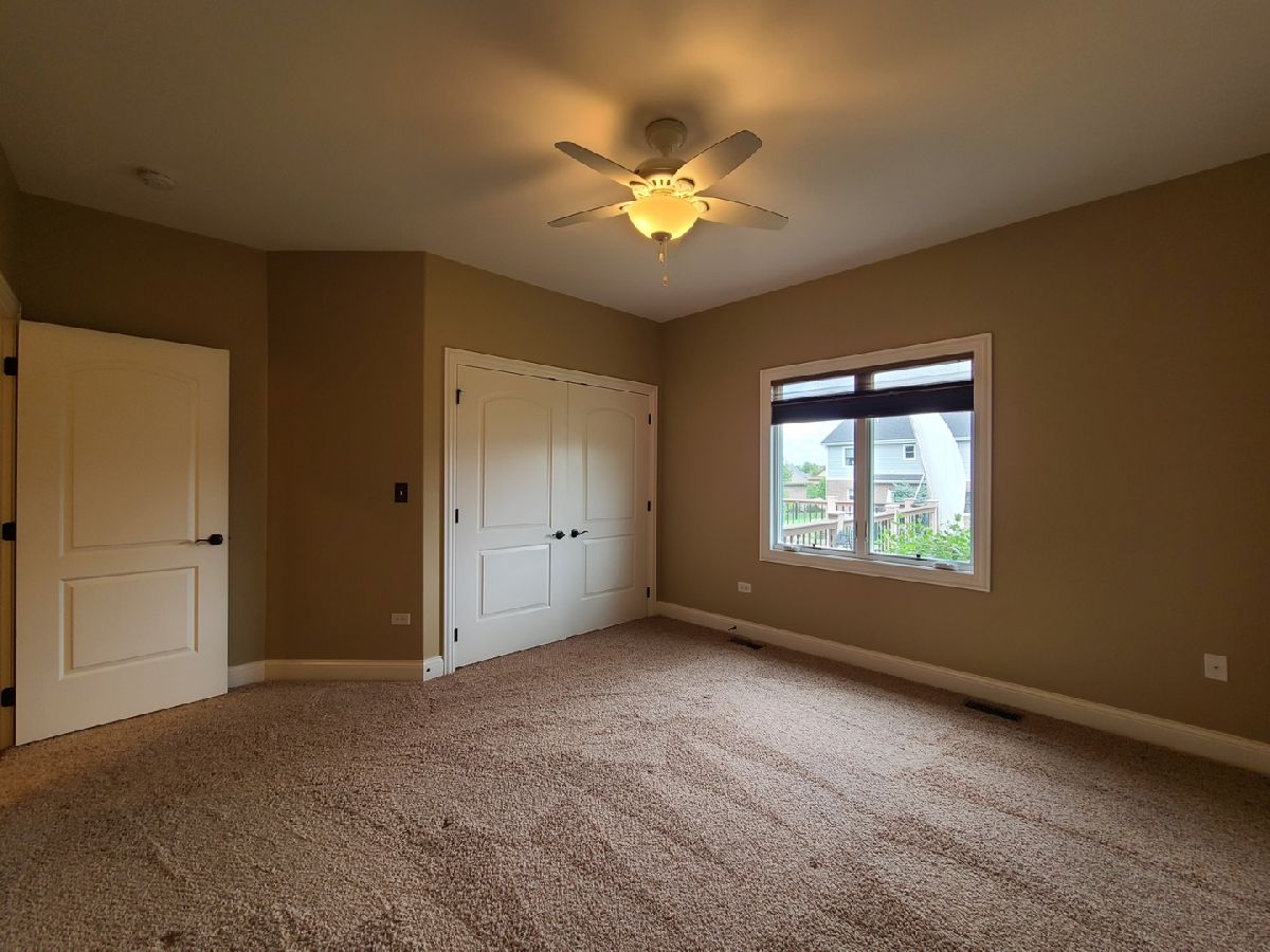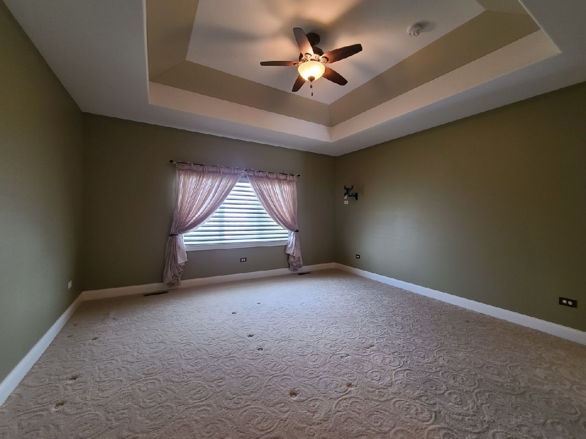 Spacious ranch home in pristine condition awaits your arrival. Split floorplan with three bedrooms on the main floor and a fourth bedroom in the lower level. Work from home in the large office with vaulted ceilings, French doors and large window that overlooks the well-maintained front yard. Beautiful kitchen with center island, granite counter tops, stainless steel appliances, double oven, wine rack and under cabinet lighting. Entertain in the adjacent large living room with vaulted ceilings and Heatilator gas fireplace, beautiful custom wooden plantation shutters and 72-inch ceiling fan. Elegant dining room with two-tiered crown moldings and beautiful crystal chandelier. Beautiful hardwood floors on main floor. White two panel white doors, 5-inch baseboard trim and wide door trim throughout. Custom window treatments throughout home. Oversized primary bedroom with inlay recessed ceiling, walk in closet and second closet. Primary bath has separate sinks, whirlpool tub, and separate shower. Incredible finished lookout basement with full kitchen, full bath, and space for your exercise equipment. Entertain family and friends on the large composite deck and paver patio all the while enjoying the well-manicured fenced in yard with sprinkler system, and beautiful landscape with lighting on trees and home. 3 car garage and extra-large driveway. Close proximity to restaurants, shopping, grocery (Mariano's, Meijer, Jewel-Osco), Target, Walmart, health club, sports club, Movie Theater (AMC), and so much more. This is truly an amazing home in a terrific location available for immediate occupancy. NO PETS, Security Deposit = 1 MO RENT.