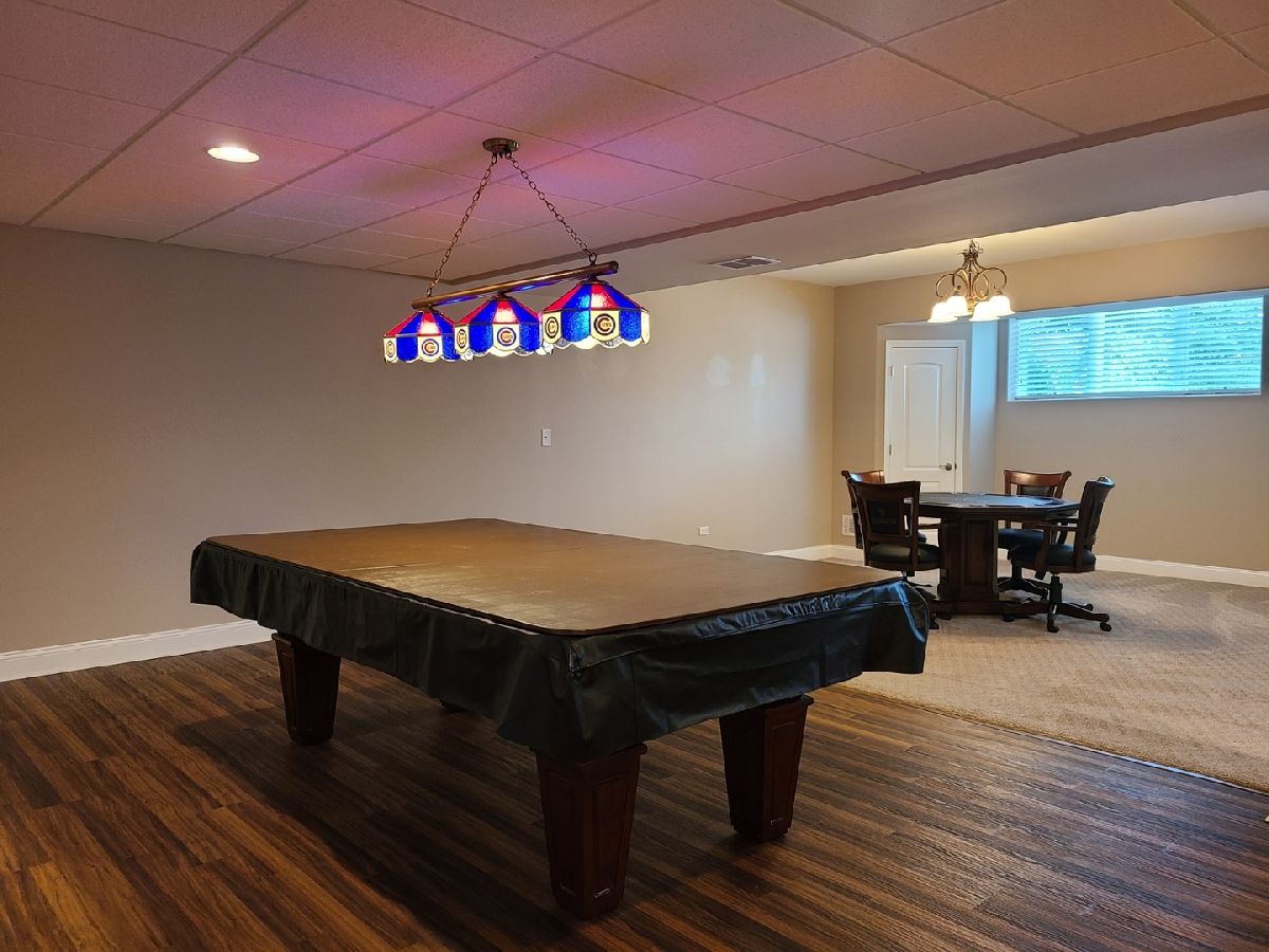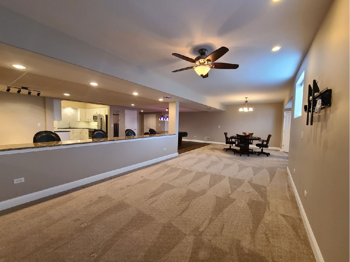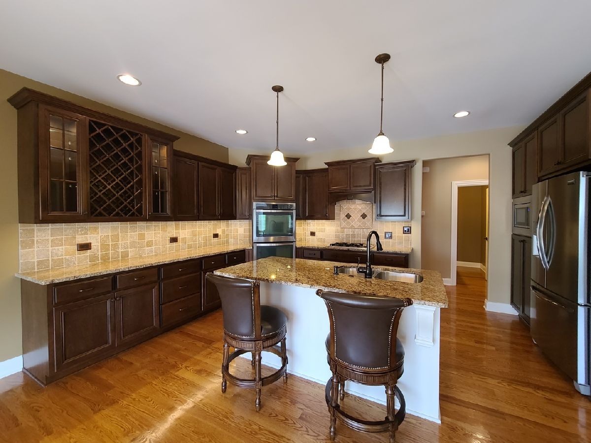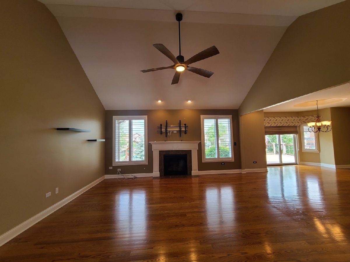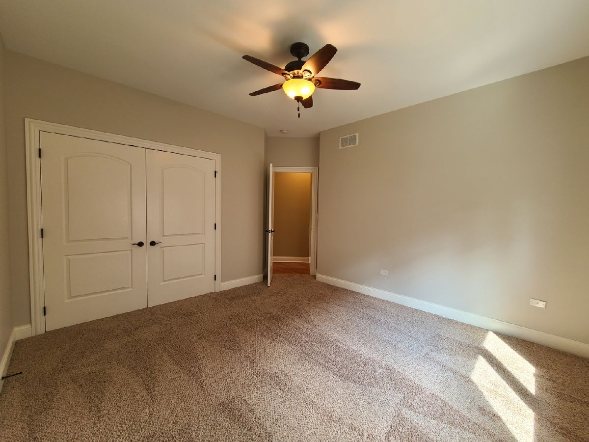 Spacious ranch home in pristine condition awaits your arrival. Split floorplan with three bedrooms on the main floor and a fourth bedroom in the lower level. Work from home in the large office with vaulted ceilings, French doors and large window that overlooks the well-maintained front yard. Beautiful kitchen with center island, granite counter tops, stainless steel appliances, double oven, wine rack and under cabinet lighting. Entertain in the adjacent large living room with vaulted ceilings and Heatilator gas fireplace, beautiful custom wooden plantation shutters and 72-inch ceiling fan. Elegant dining room with two-tiered crown moldings and beautiful crystal chandelier. Beautiful hardwood floors on main floor. White two panel white doors, 5-inch baseboard trim and wide door trim throughout. Custom window treatments throughout home. Oversized primary bedroom with inlay recessed ceiling, walk in closet and second closet. Primary bath has separate sinks, whirlpool tub, and separate shower. Incredible finished lookout basement with full kitchen, full bath, and space for your exercise equipment. Entertain family and friends on the large composite deck and paver patio all the while enjoying the well-manicured fenced in yard with sprinkler system, and beautiful landscape with lighting on trees and home. 3 car garage and extra-large driveway. Close proximity to restaurants, shopping, grocery (Mariano's, Meijer, Jewel-Osco), Target, Walmart, health club, sports club, Movie Theater (AMC), and so much more. This is truly an amazing home in a terrific location available for immediate occupancy. NO PETS, Security Deposit = 1 MO RENT.