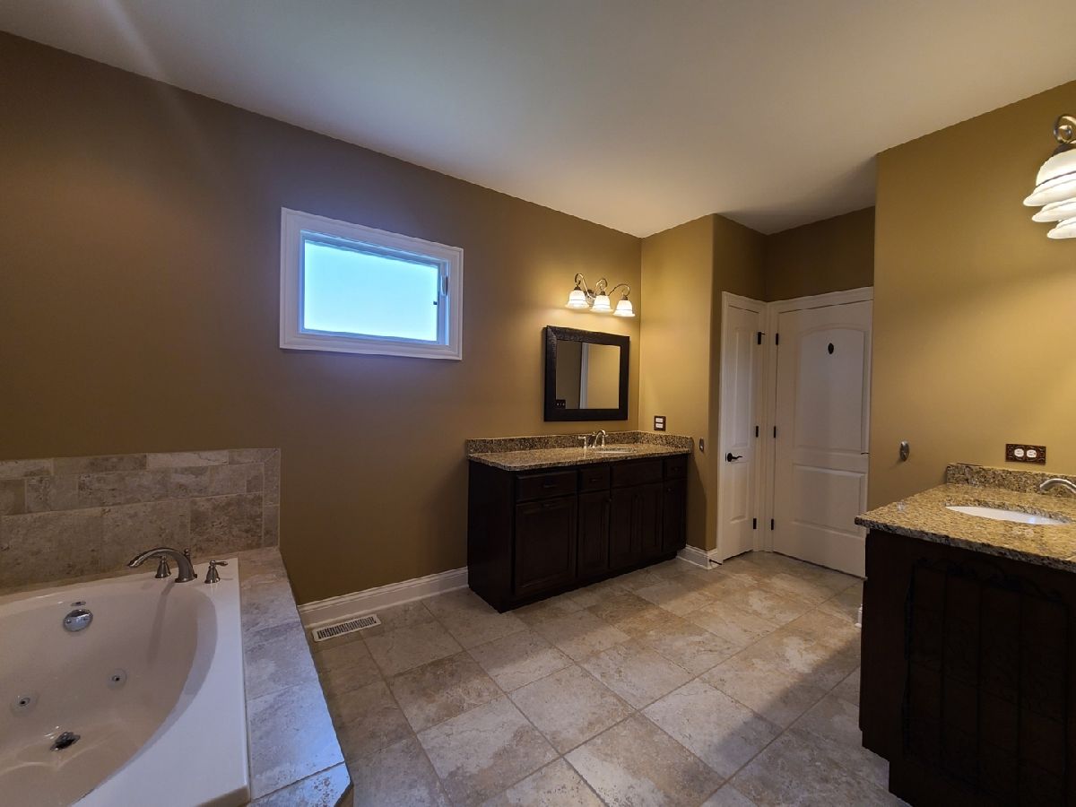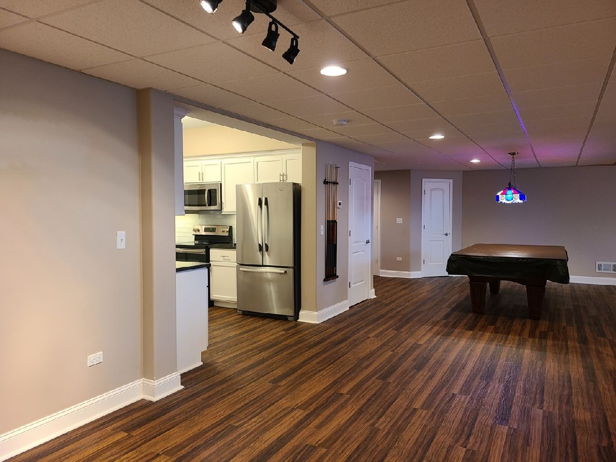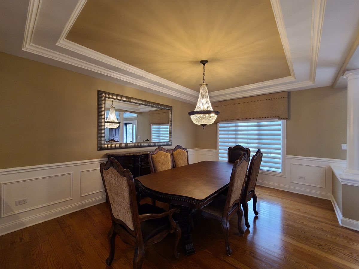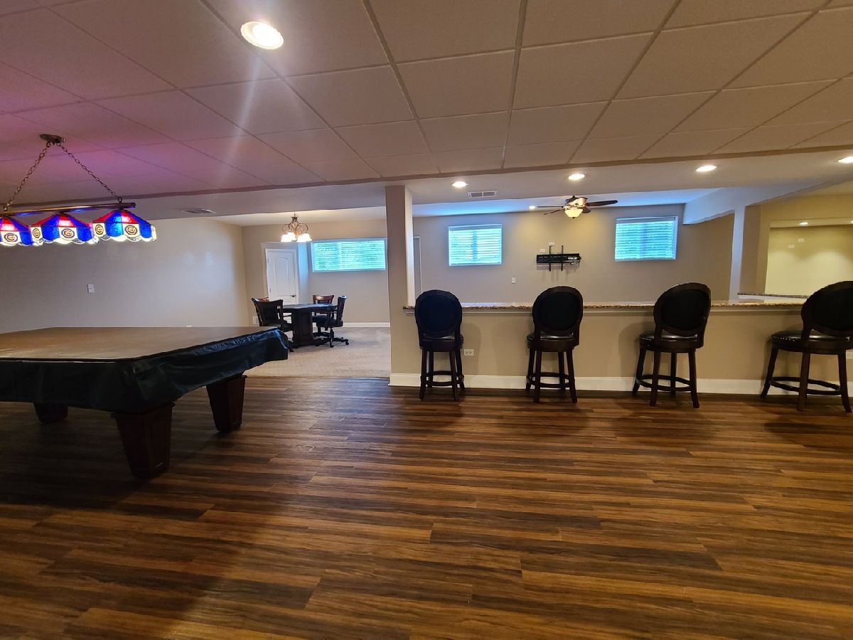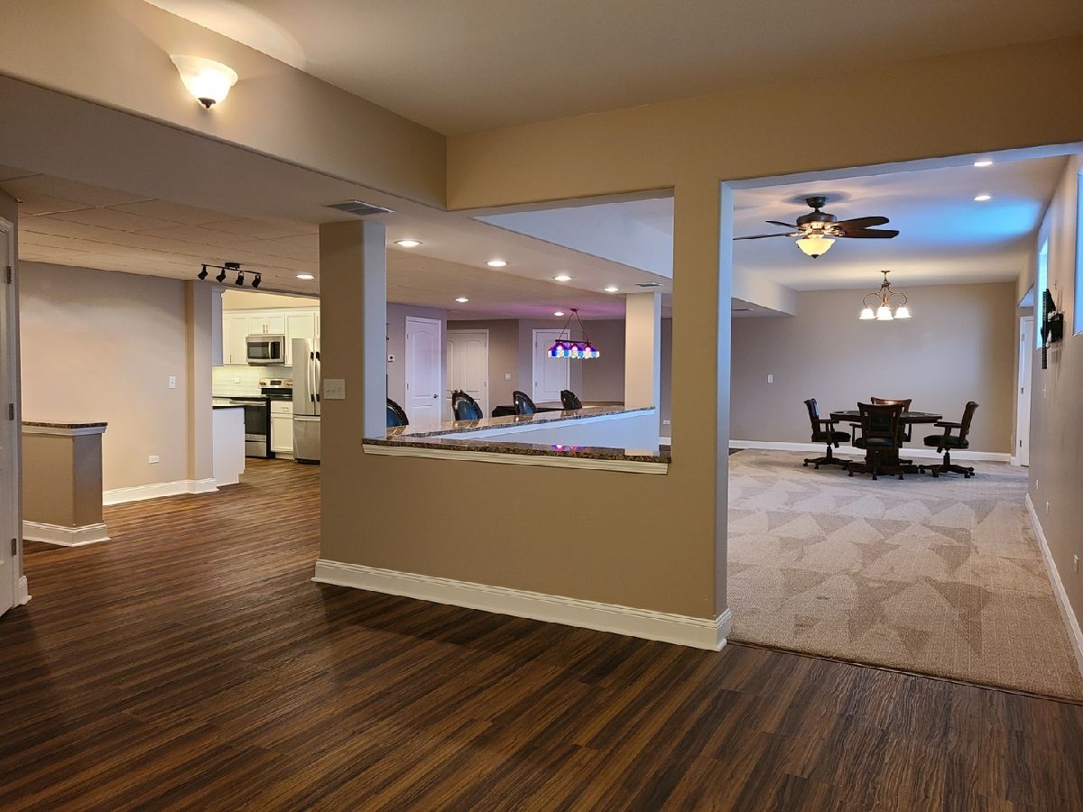 Spacious ranch home in pristine condition awaits your arrival. Split floorplan with three bedrooms on the main floor and a fourth bedroom in the lower level. Work from home in the large office with vaulted ceilings, French doors and large window that overlooks the well-maintained front yard. Beautiful kitchen with center island, granite counter tops, stainless steel appliances, double oven, wine rack and under cabinet lighting. Entertain in the adjacent large living room with vaulted ceilings and Heatilator gas fireplace, beautiful custom wooden plantation shutters and 72-inch ceiling fan. Elegant dining room with two-tiered crown moldings and beautiful crystal chandelier. Beautiful hardwood floors on main floor. White two panel white doors, 5-inch baseboard trim and wide door trim throughout. Custom window treatments throughout home. Oversized primary bedroom with inlay recessed ceiling, walk in closet and second closet. Primary bath has separate sinks, whirlpool tub, and separate shower. Incredible finished lookout basement with full kitchen, full bath, and space for your exercise equipment. Entertain family and friends on the large composite deck and paver patio all the while enjoying the well-manicured fenced in yard with sprinkler system, and beautiful landscape with lighting on trees and home. 3 car garage and extra-large driveway. Close proximity to restaurants, shopping, grocery (Mariano's, Meijer, Jewel-Osco), Target, Walmart, health club, sports club, Movie Theater (AMC), and so much more. This is truly an amazing home in a terrific location available for immediate occupancy. NO PETS, Security Deposit = 1 MO RENT.