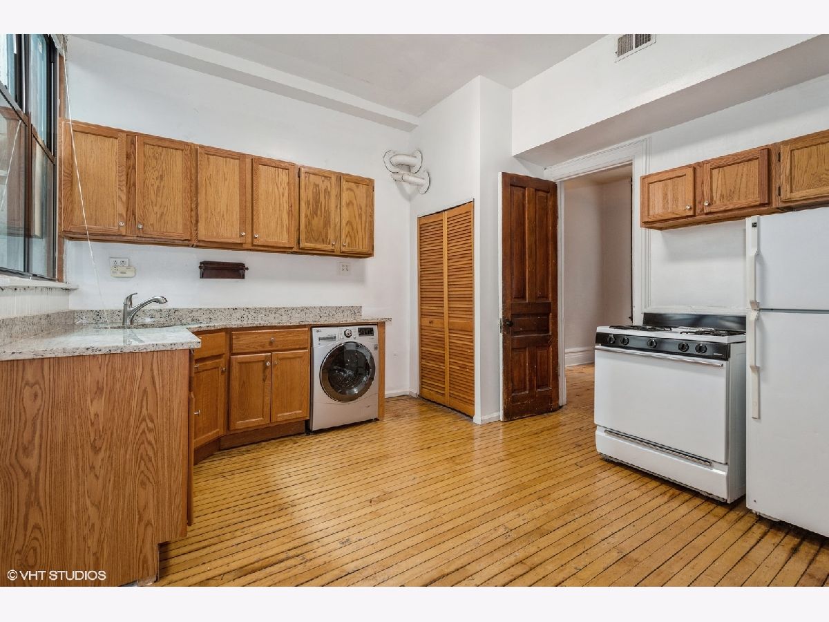 Exceptionally large "Vintage" split 2 bedroom and 1bath residence located in the heart of Lincoln Park. Unit features 14" ceilings, in unit laundry, new floors, central air/gas force air heating and pocket doors separating huge living and extensive dining room. The two bedrooms have closets and large windows with blinds. Close to shopping, taverns, restaurants and CTA # 8 Halsted bus, Red Line and Brown Line nearby. NEW floors in primary Bedroom, Living Room, Dining Room and Hallway/Foyer.