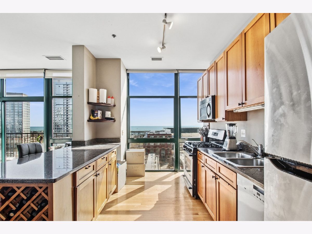 Rare North-East Corner Penthouse in the Sky! Discover your dream home with breathtaking lake and city views in this exceptional top-floor penthouse. Emphasizing a seamless blend of modern design and comfort, this residence features stunning Floor-to-Ceiling Windows for walls and every room boasts magnificent views of Chicago. Two spacious bedrooms come equipped with walk-in closets and private baths. Choose between serene Lake Michigan views or vibrant city high rises! Stylish open floor plan allows for relaxed living with exposed brick, concrete columns, and soaring 11ft ceilings. Sunlit kitchen features stainless steel appliances, a large island, and modern cabinets with ample storage. Individual bathrooms are equipped with contemporary finishes, dual sinks, and a separate shower and soaking tub. Convenient In-Unit Laundry. A private balcony allows you and your guest to step outside and soak in the spectacular views of the Bears stadium and the Historic Prairie District Mansions. Garage Parking Included! Prime Location: Just 4 blocks to the Green Line, 5 to the Red Line, and only 3 to the lakefront with a walking path to Metra line, Soldier Field, Museum Campus, and Northerly Island. Plus, just 1 block to Michigan Ave/Bus. Don't miss out on the opportunity to own this incredible penthouse!
