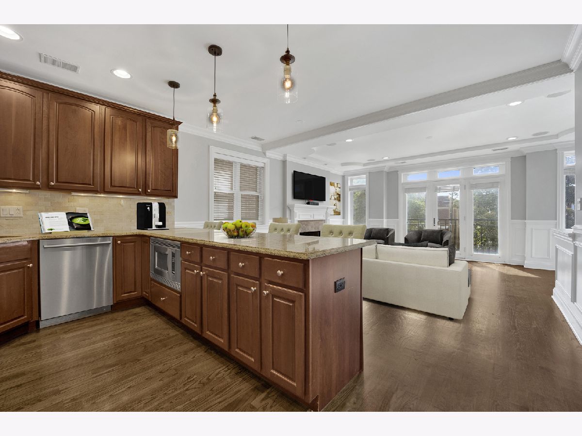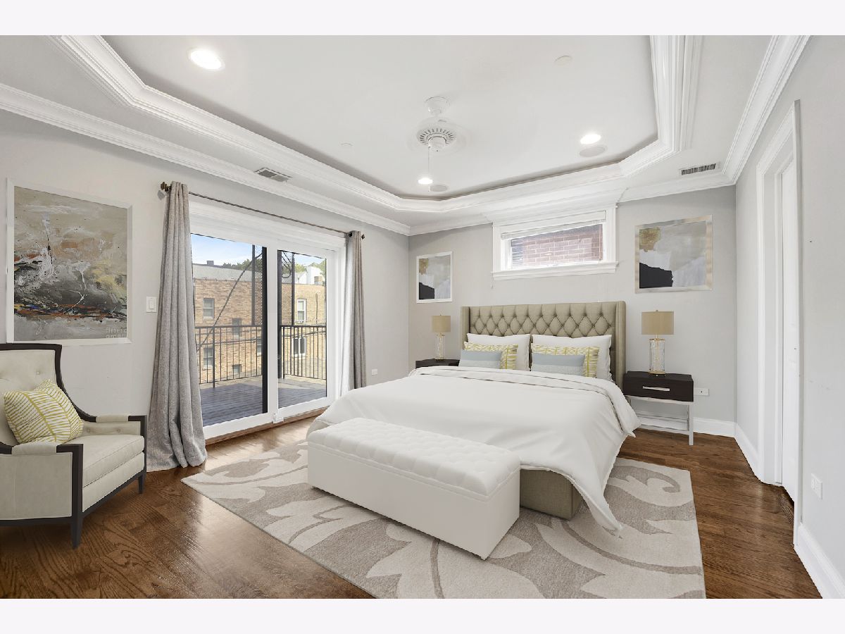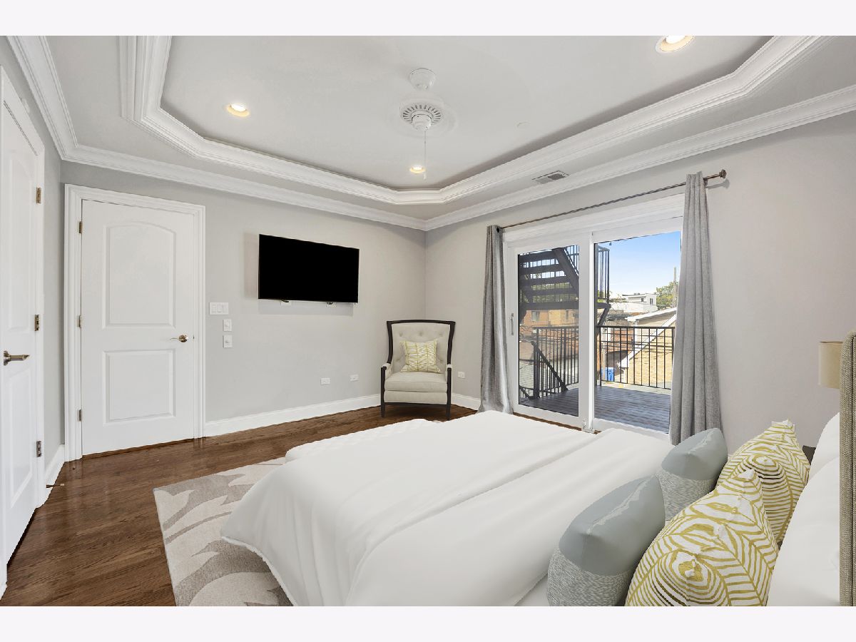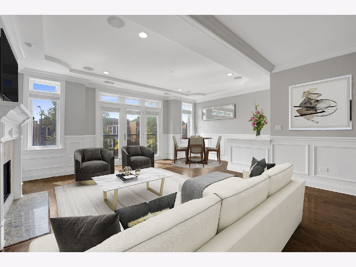 Available now! Welcome home to your bright and spacious 2 bed, 2 bath gem in the heart of Roscoe Village! Thoughtfully designed with custom finishes, this condo features trey ceilings, wainscoting, hardwood floors, crown molding, a professional sound system, and abundant natural light. The gourmet kitchen is a chef's dream with high-end stainless steel appliances, ample cabinetry, and a breakfast bar that flows seamlessly into the spacious living room. Enjoy cozy evenings by the fireplace, and plenty of space for a full dining table - perfect for entertaining! The primary suite offers a walk-in closet, private deck, and a spa-like bath with Jacuzzi tub, separate shower, and dual sinks. The second bedroom is generously sized with access to a full bath. Enjoy the convenience of in-unit laundry, ample storage plus a large basement storage closet, and garage parking. Located steps from Roscoe Village's vibrant shops, restaurants, and cafes, and just a short walk to the Brown Line for easy commuting. Situated in an excellent school district, this home offers the best of city living in a charming neighborhood. Garage parking available for an additional fee.